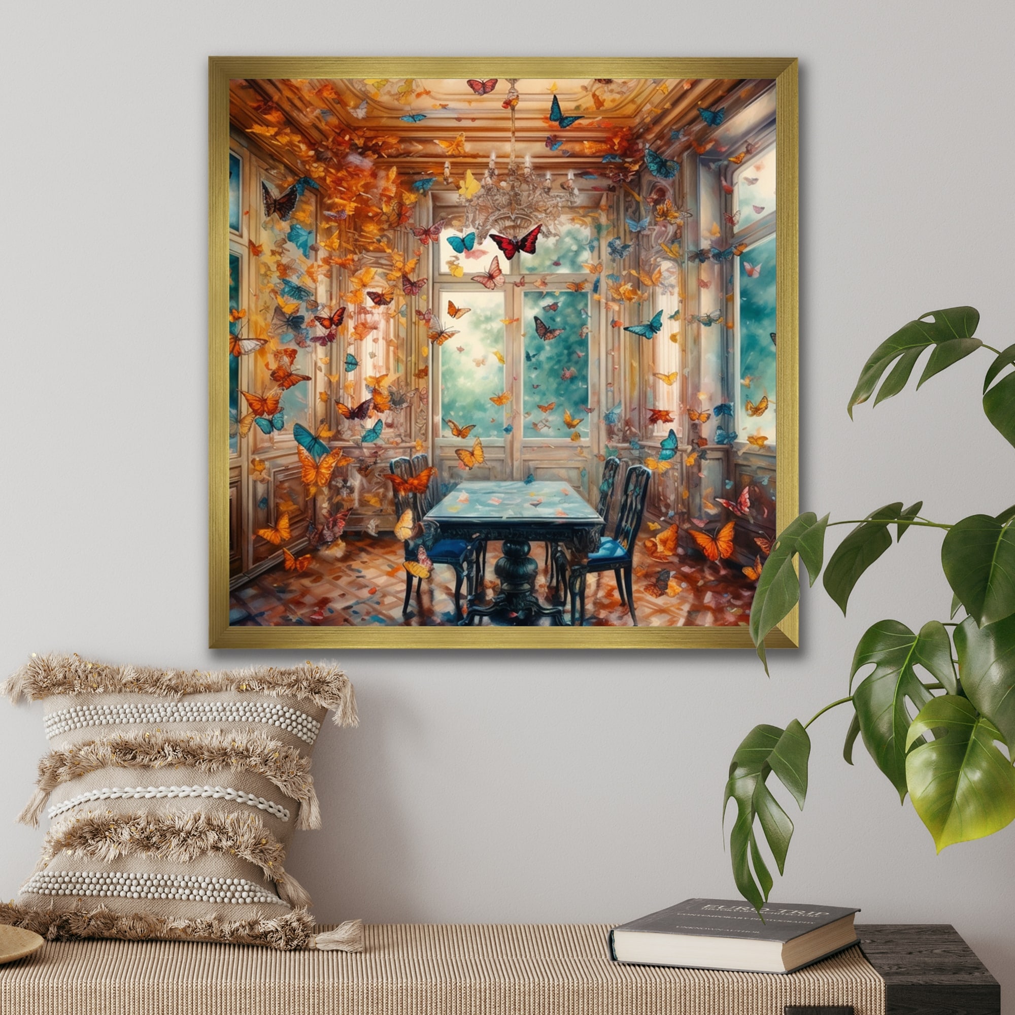 Designart "Dreamy Butterfly Room" Floral Framed Wall Art for Living Room