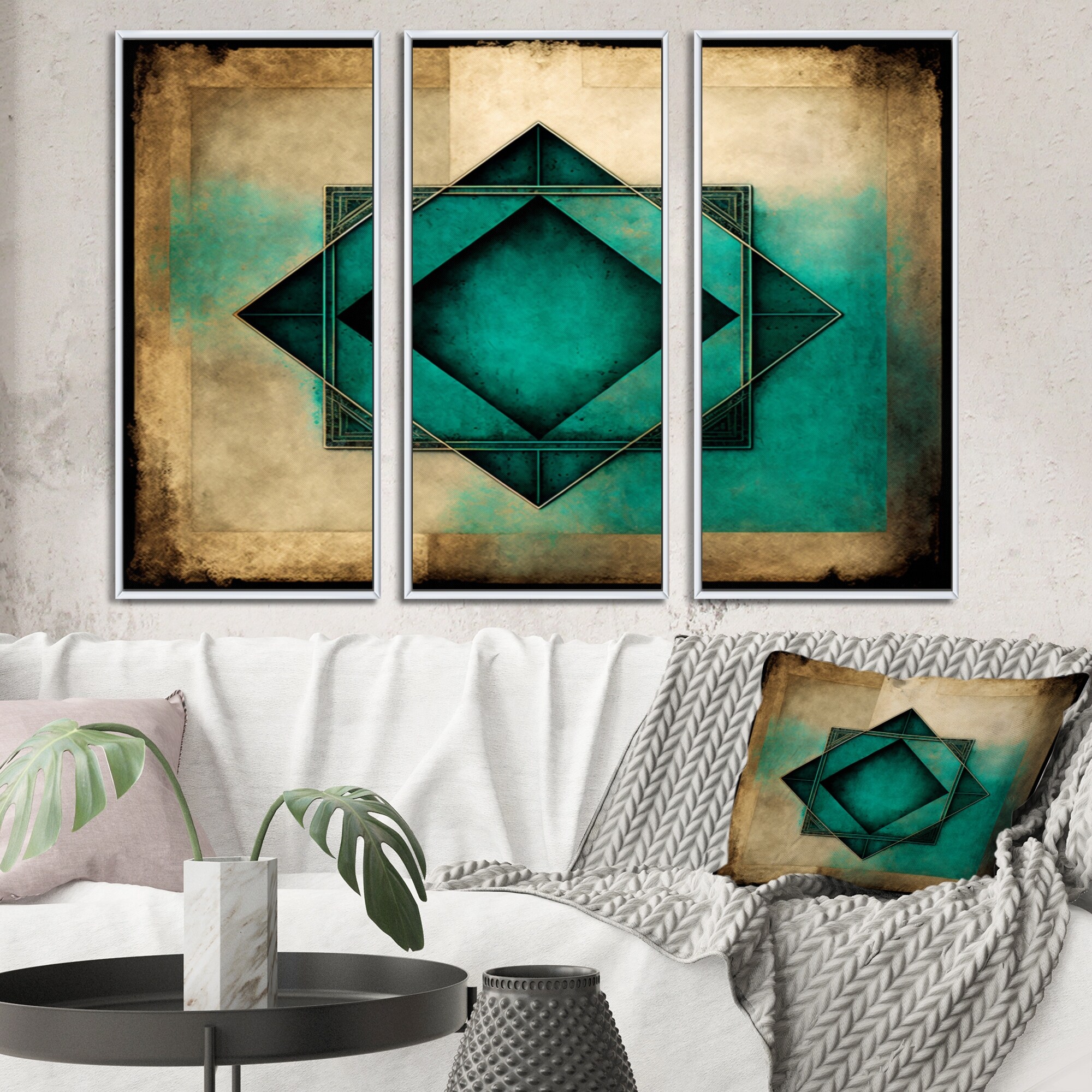 Designart "Impermanence Japanese Vintage Art III" Modern Geometric Framed Canvas Wall Art Print - 3 Panels
