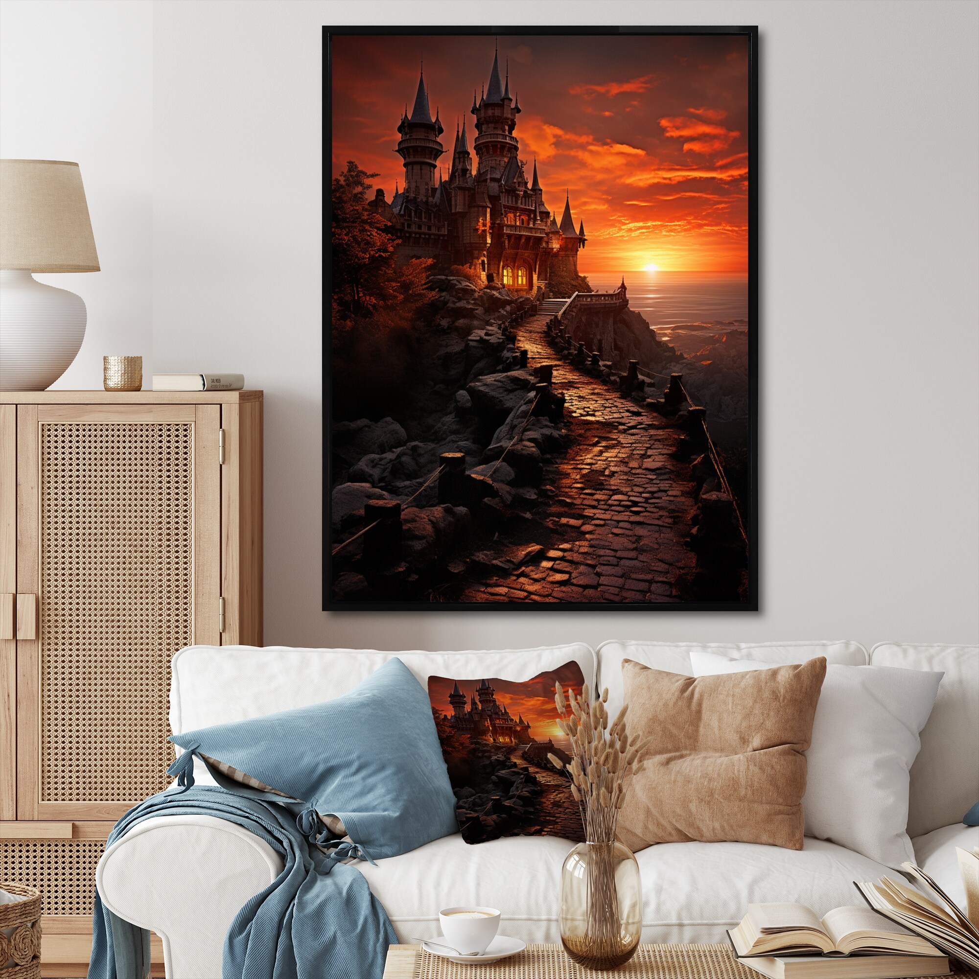 Designart "Castles Sunset Silhouette I" Castles Framed Canvas Wall Art