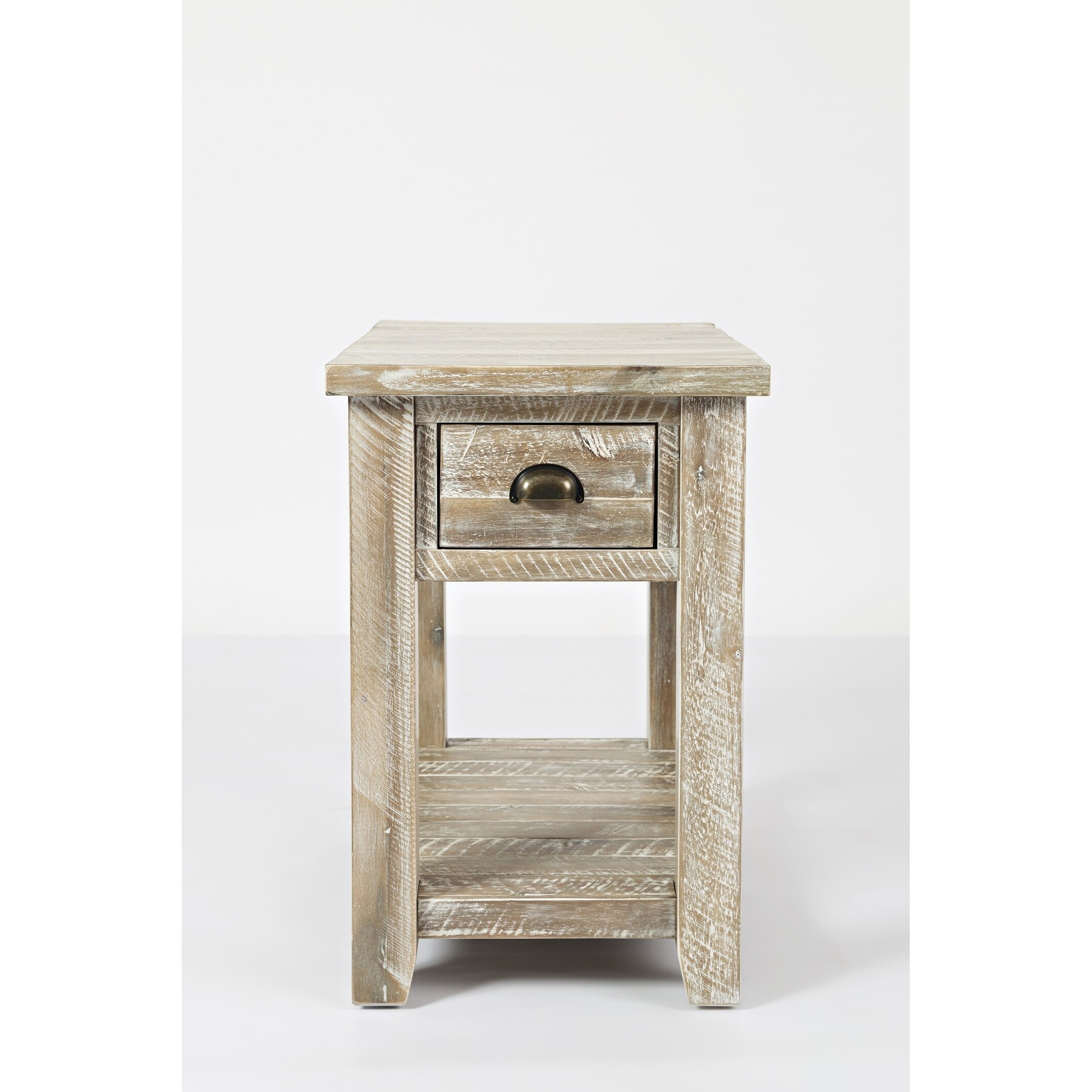 Wooden One Drawer Chairside Table in Washed Gray Finish