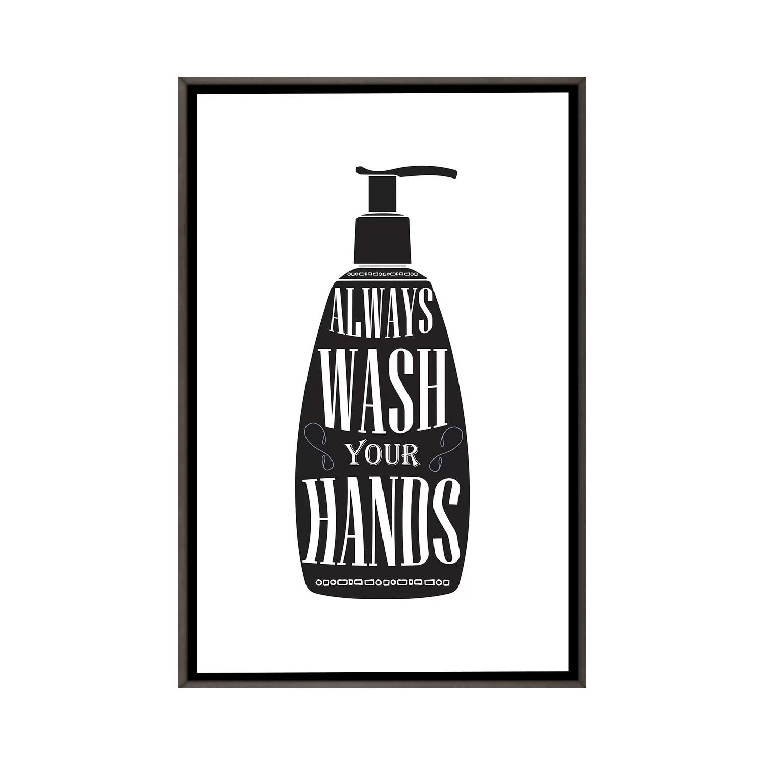 iCanvas "Wash Your Hands Silhouette" by Pixy Paper Framed