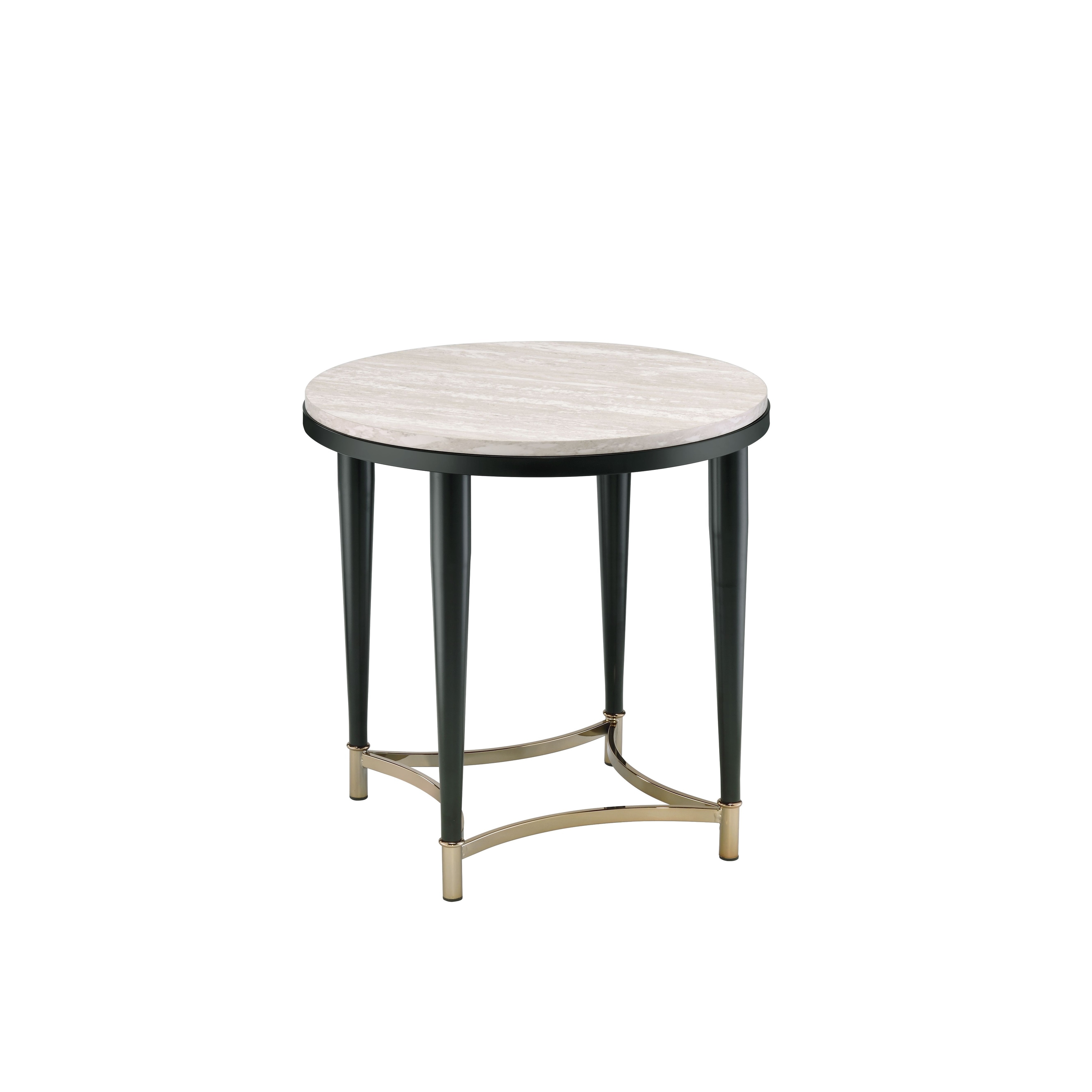 Ayser Wood Round End Table with &Metal Tapered Leg, White Washed&Black