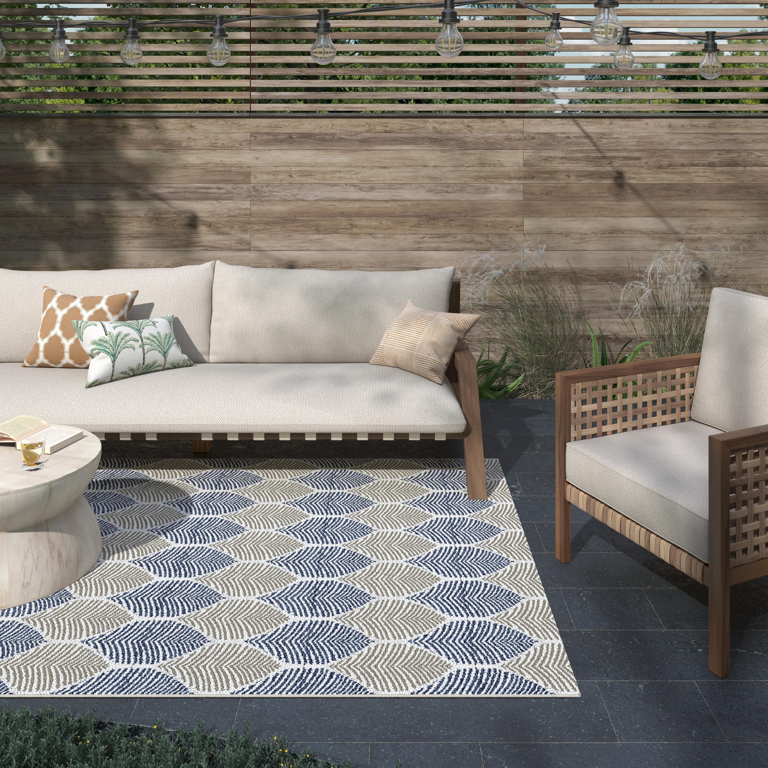 Blue; Beige Indoor / Outdoor Polypropylene Area Rug 5x8, Machine Woven, Durable Polypropylene, Water and Fade Resistant