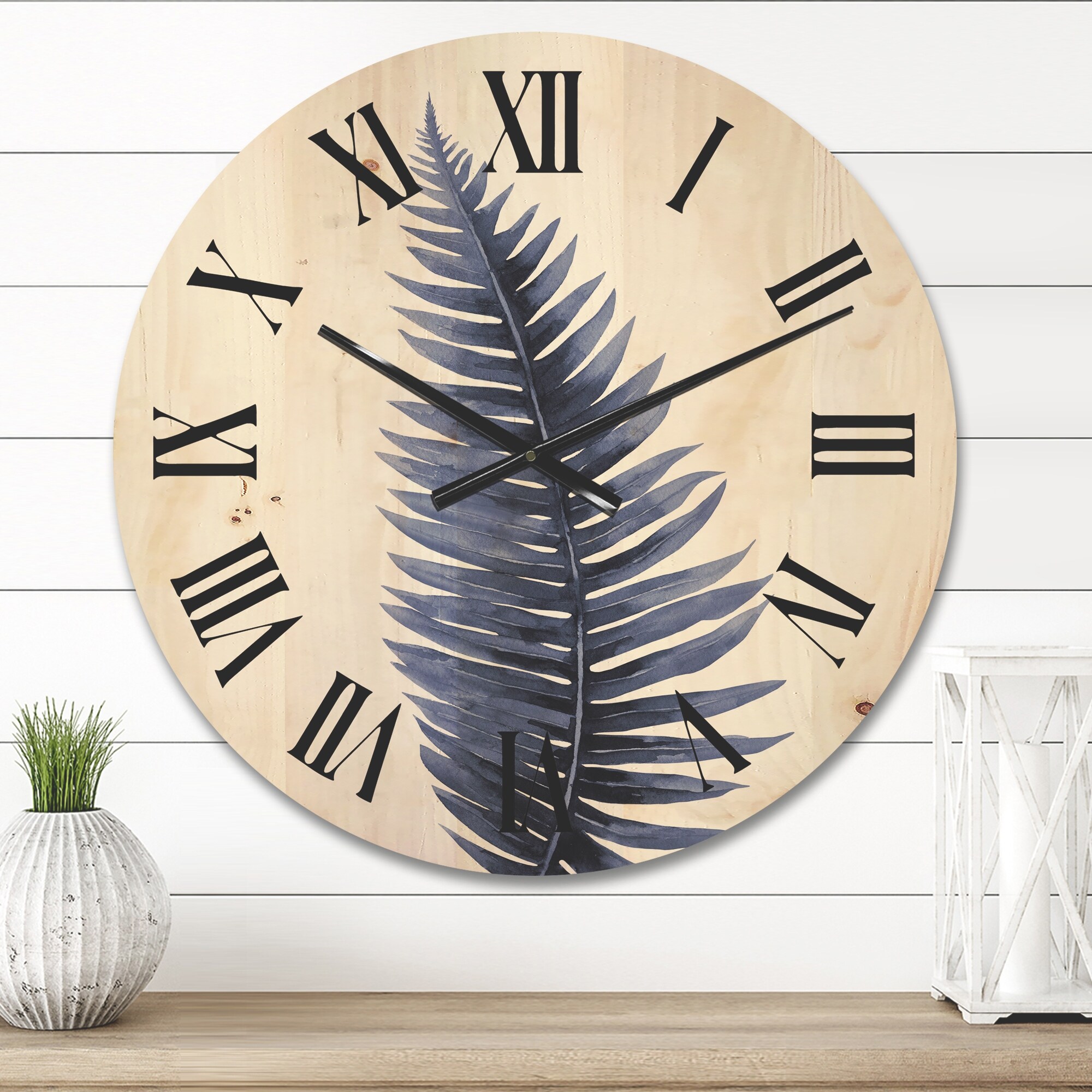 Designart 'Tropical Blue Watercolour Leaves II' Bohemian & Eclectic Wood Wall Clock