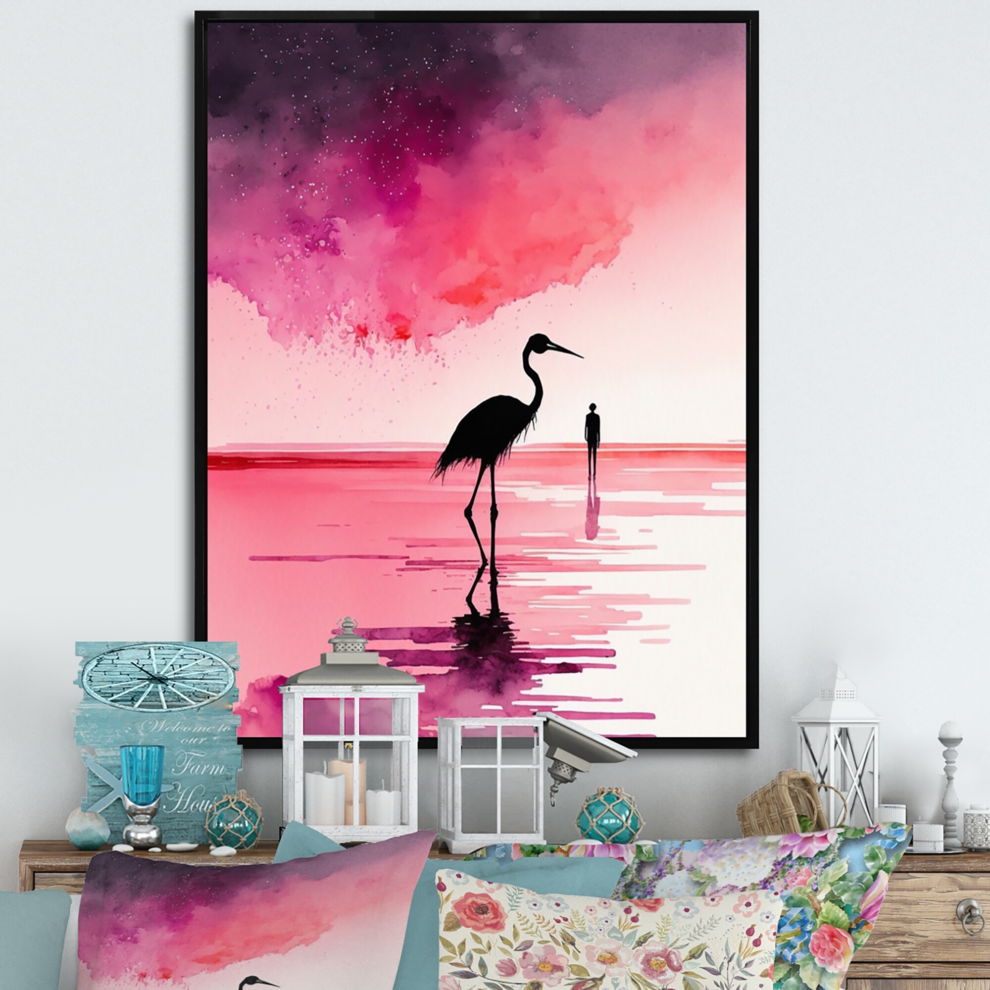 Designart "Watercolour Silhouette of Pink And Black Flamingo III" Animals Flamingo Framed Canvas Wall Art Print