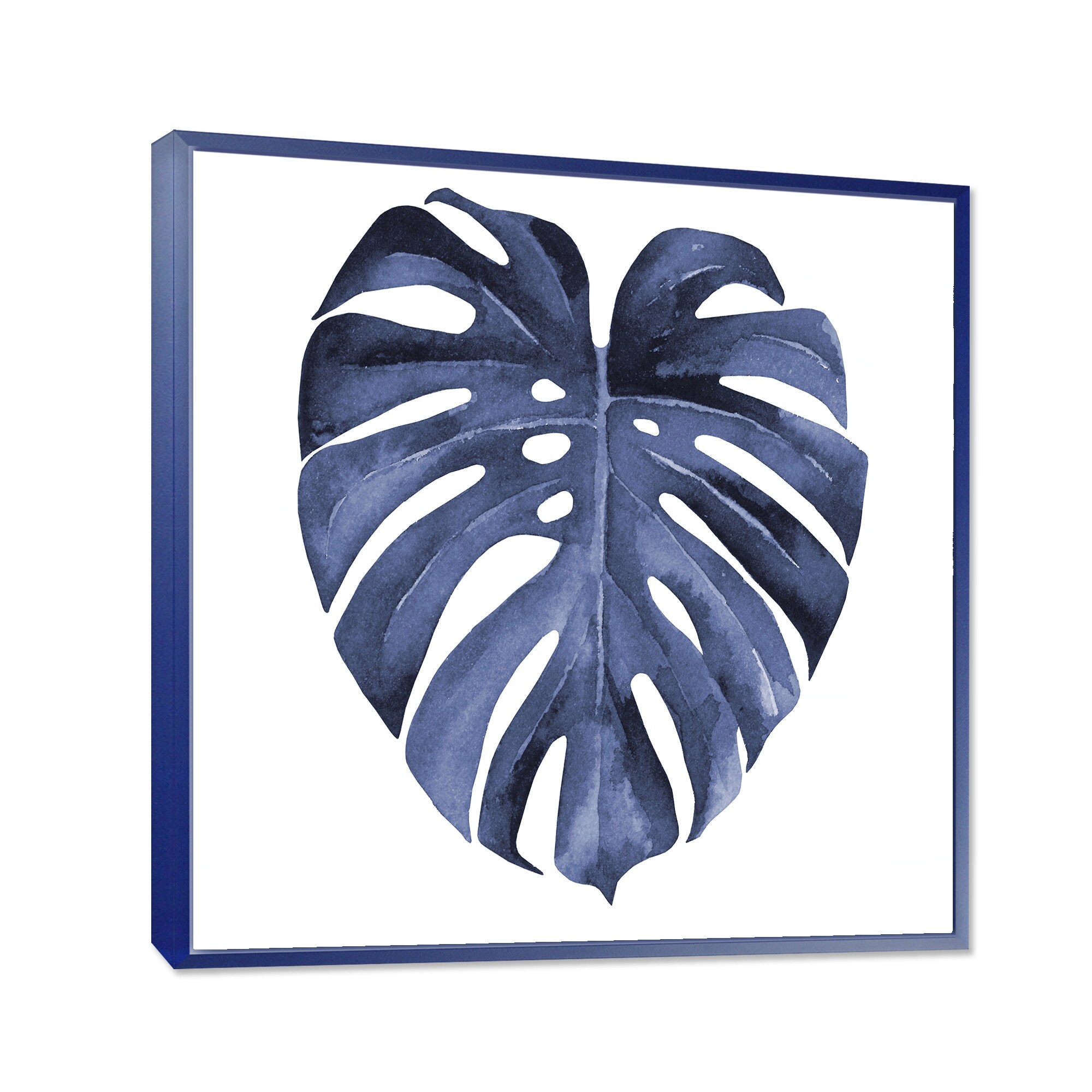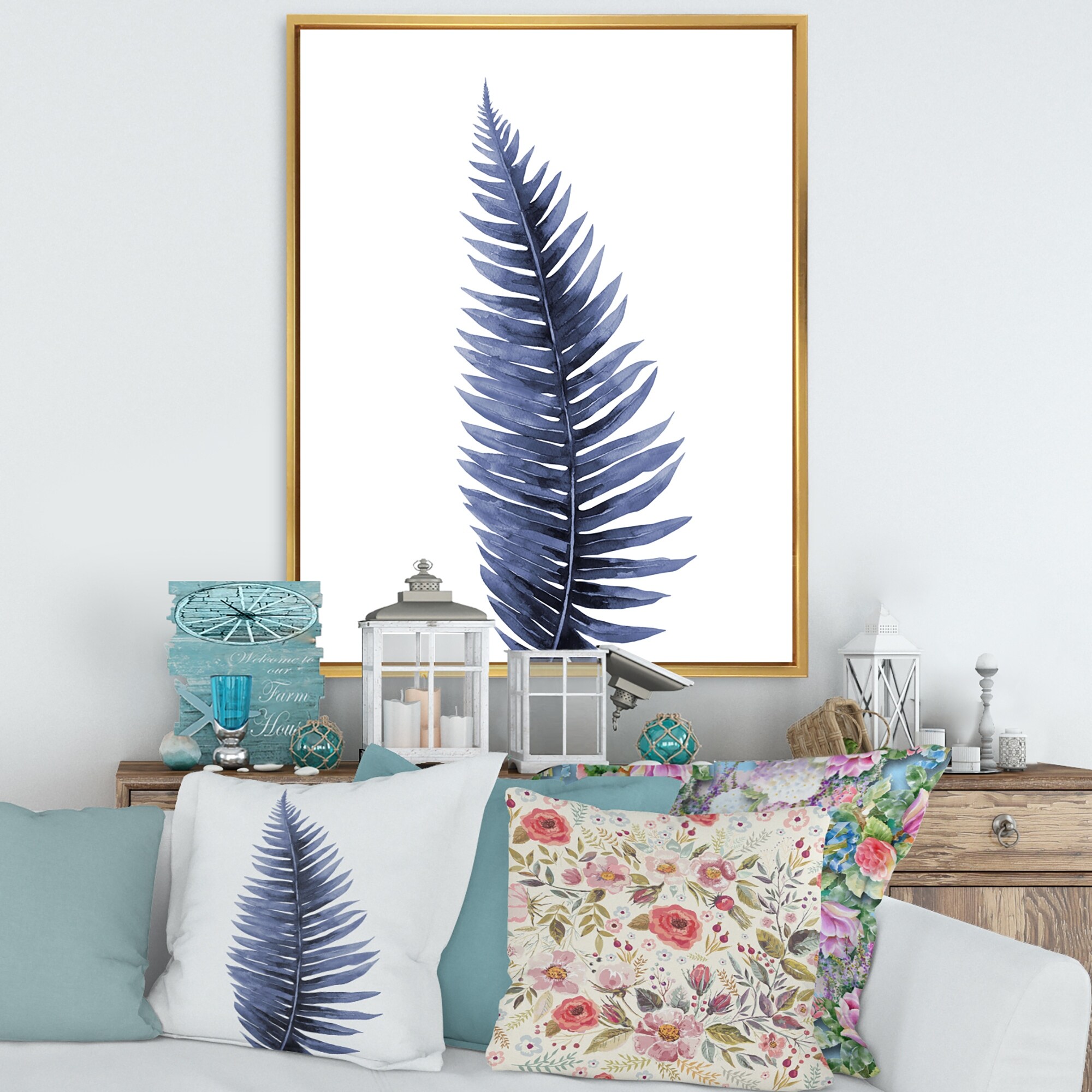 Designart "Tropical Blue Watercolour Leaves II" Bohemian & Eclectic Framed Canvas Wall Art Print