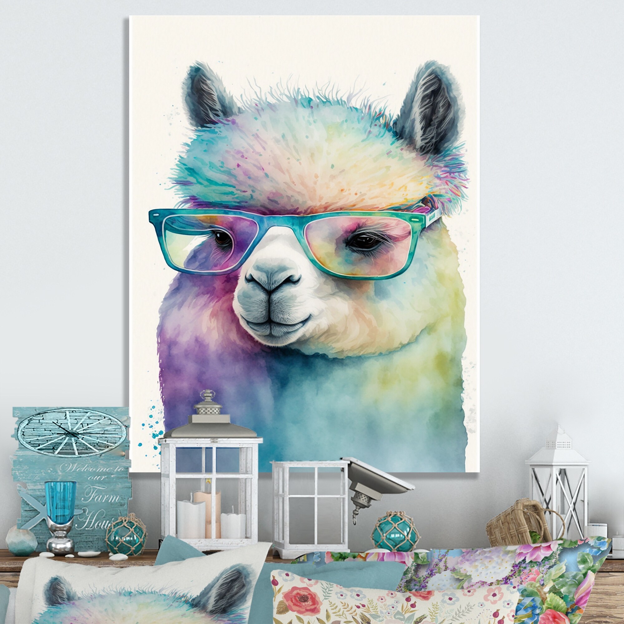 Designart "Cool Llama With Sunglasses Watercolour IV" Animals Llama Canvas Wall Art