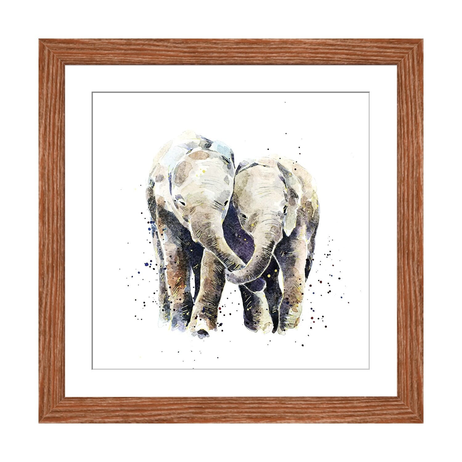 iCanvas "Two Elephants" by EdsWatercolours Framed Canvas Print