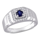 Miadora Sterling Silver Men's Created Blue and White Sapphire Halo Wedding Band Ring