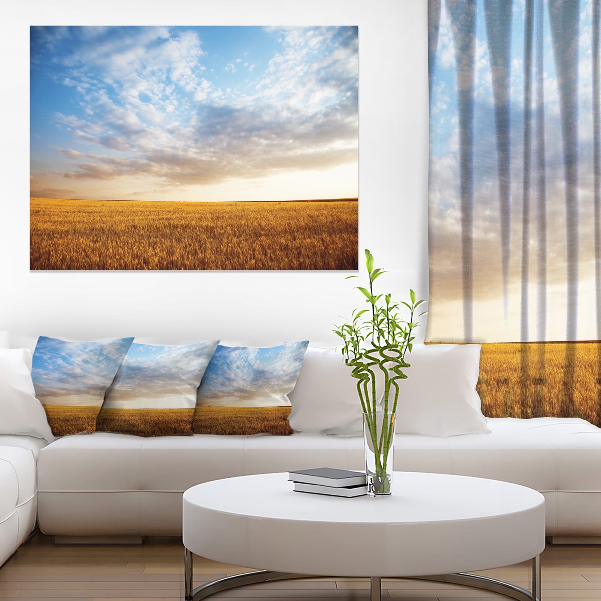 Wheat Field under Summer Sky - Extra Large Wall Art Landscape - Blue