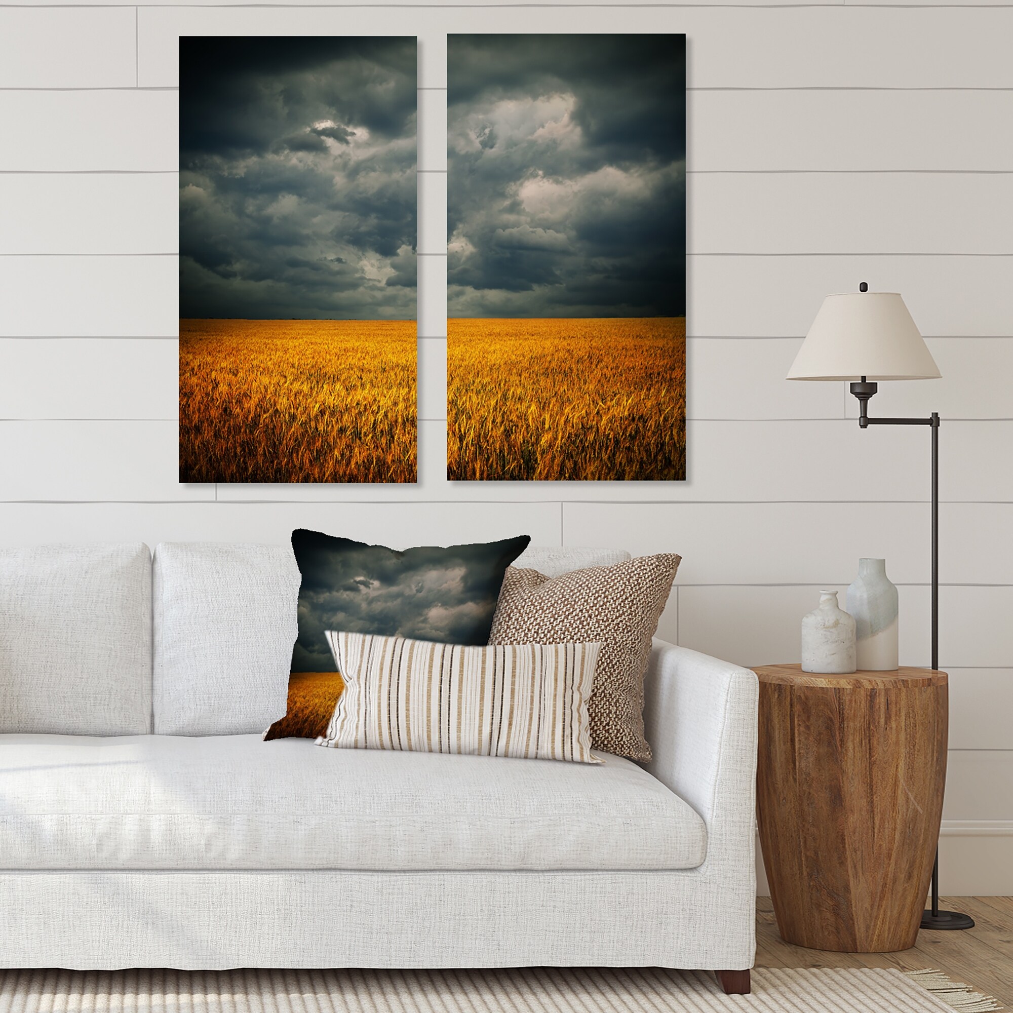 Designart "Stormy Clouds Over Wheat Field" Landscape Canvas Wall Art Print 2 Piece Set
