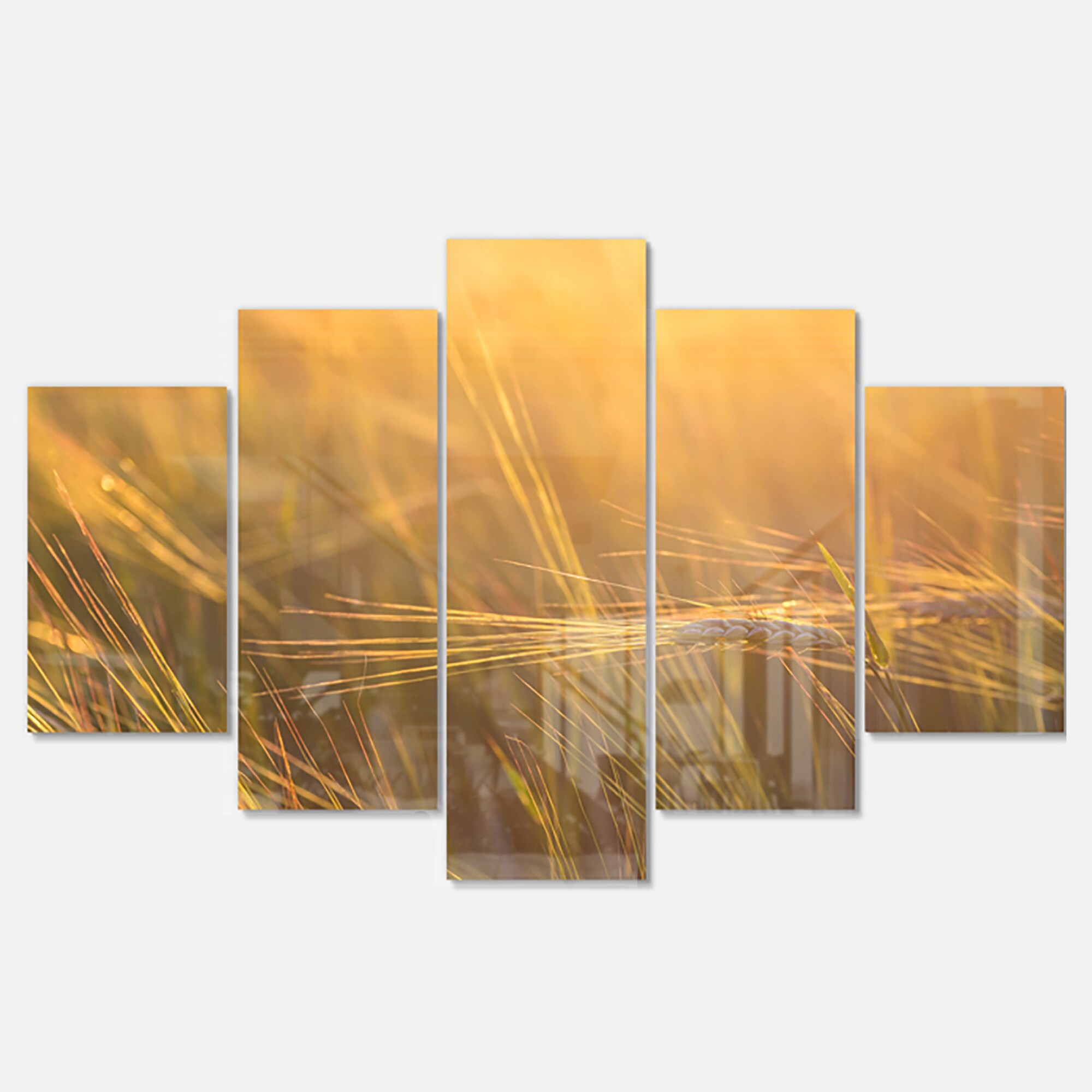 Designart 'Wheat Field Close-up at Sunset' Large Landscape Glossy Metal Wall Art