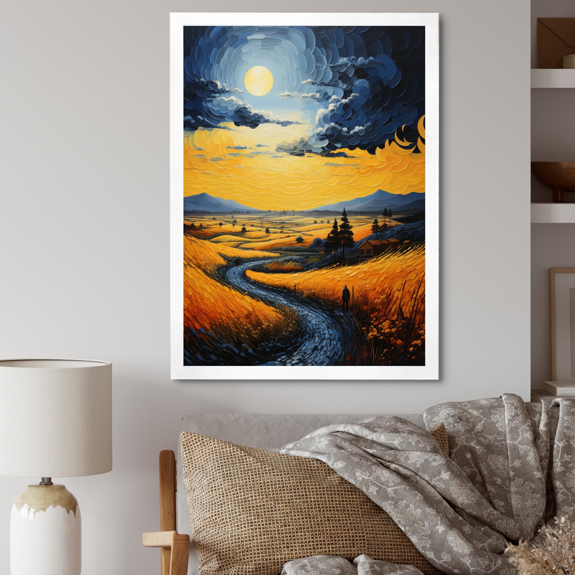 Designart "Scenery Road Wheat Field" Traditional Framed Wall Art
