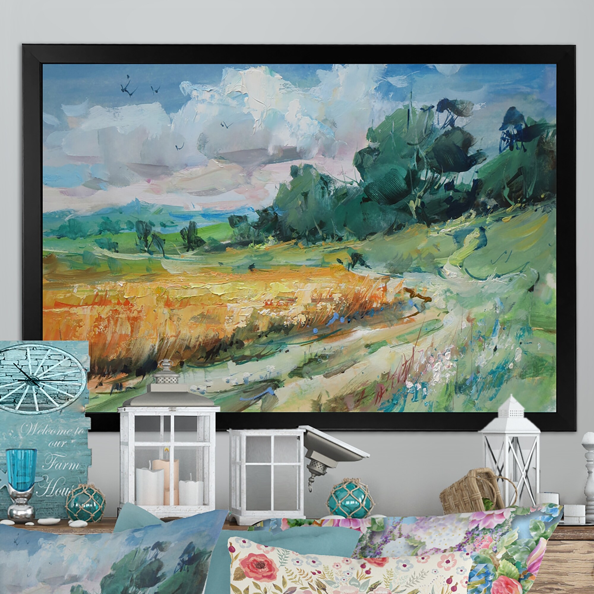 Designart "Countryside Wheat And Pastel VI" Countryside Framed Canvas Wall Art