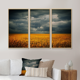 Designart "Stormy Clouds Over Wheat Field" Landscape Framed Canvas Wall Art Set of 3 - 4 Colors of Frames