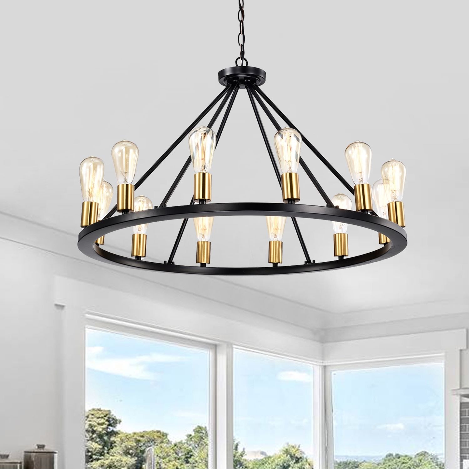 Acroma 12-light Modern Farmhouse 40In Wagon Wheel Chandelier