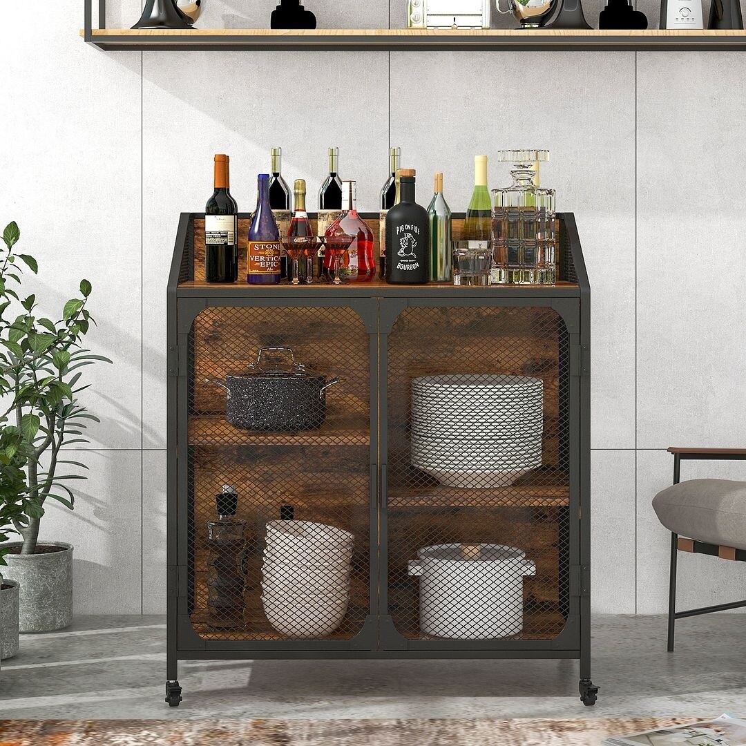 Cabinet Metal Mesh Double Door with Universal Wheel