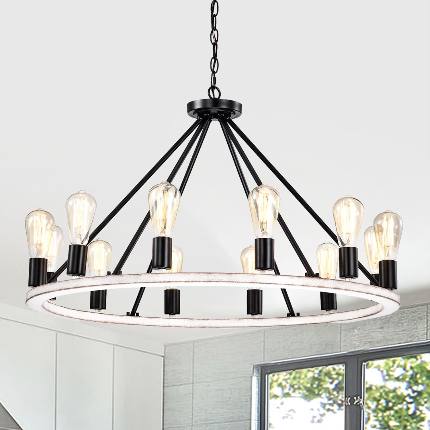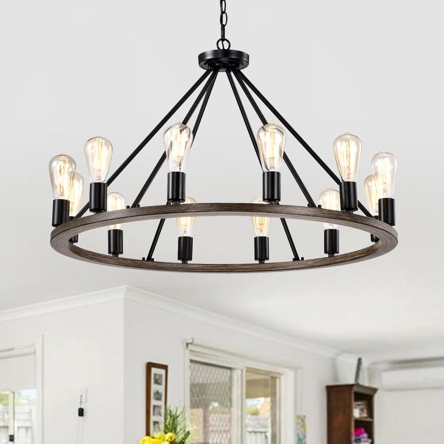Acroma 12-light 41In Modern Farmhouse Wagon Wheel Chandelier - N/A