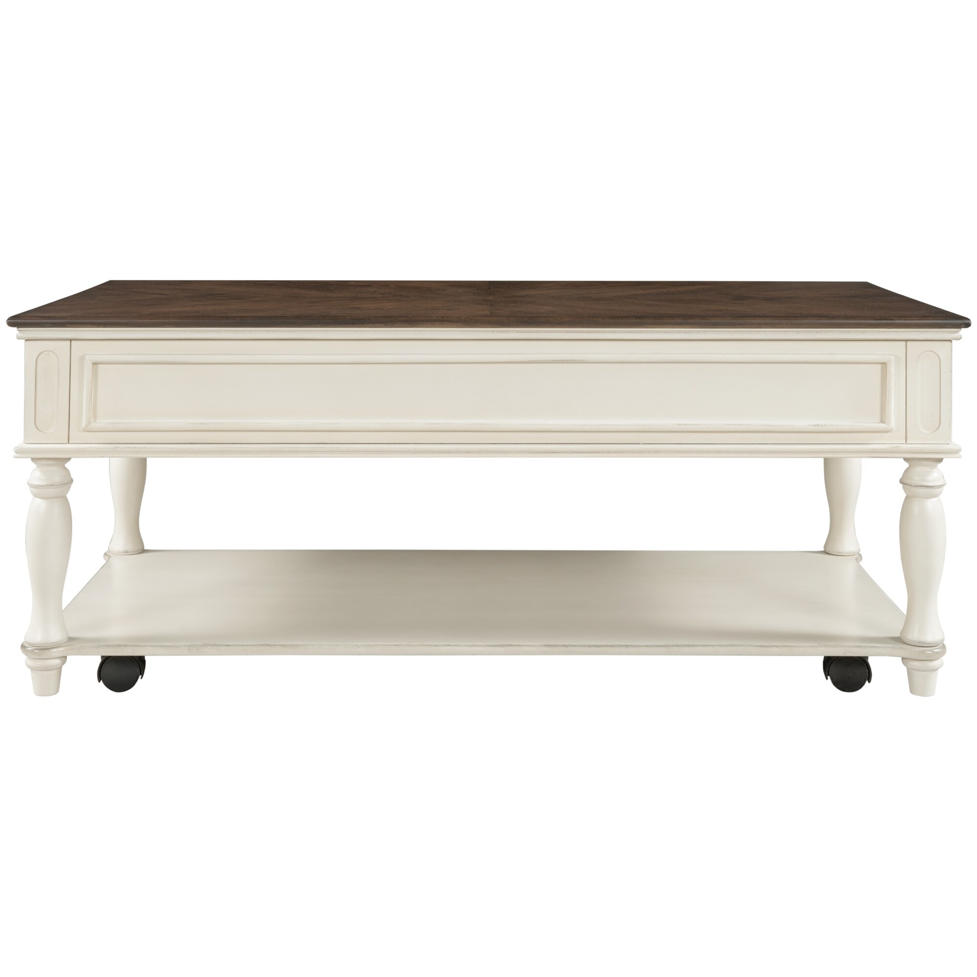 Two-tone Retro Cocktail Table Coffee Table Easy Assembly Movable with Caster Wheels