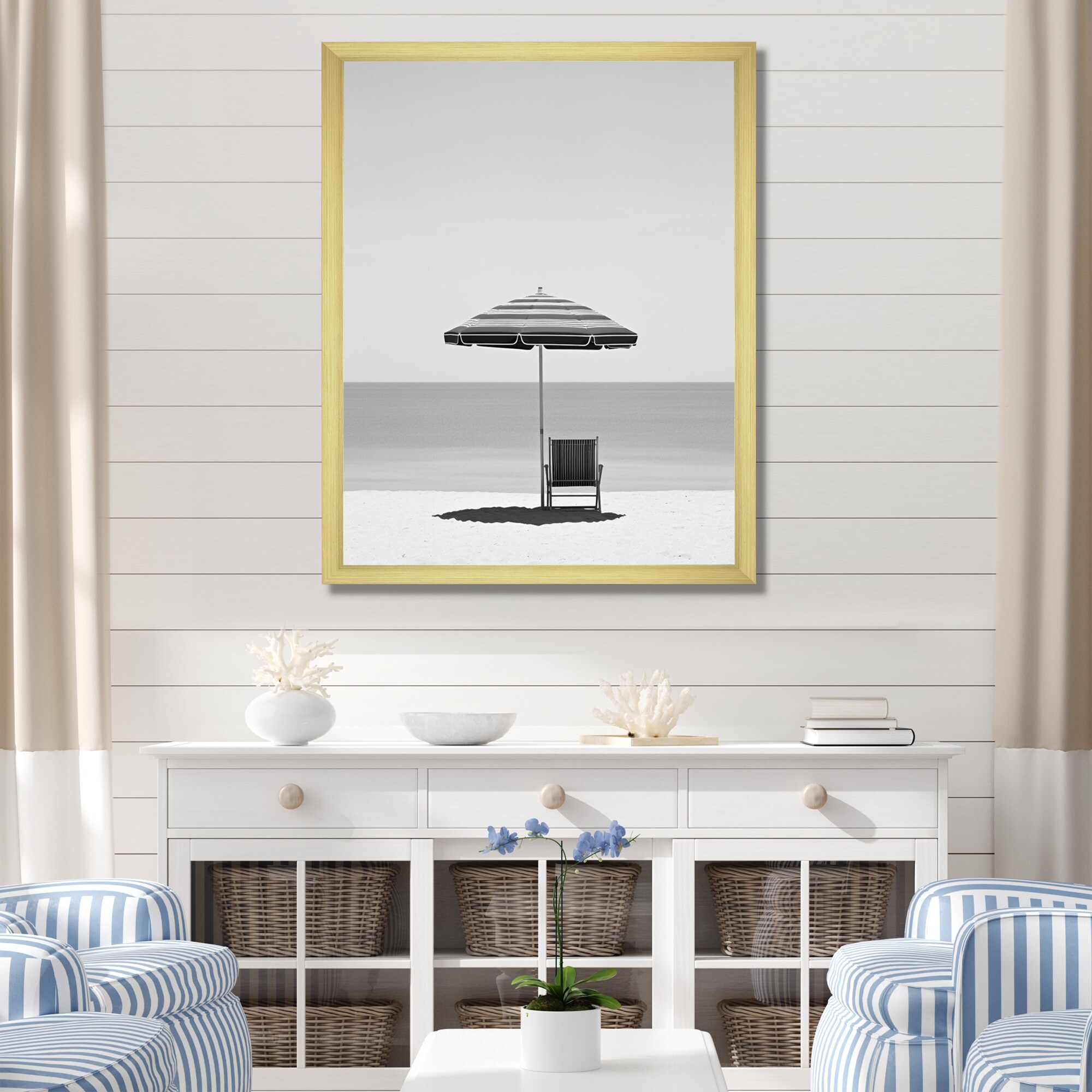 Designart "Black And White Minimalism Beach Photo II" Beach Framed Wall Art Living Room