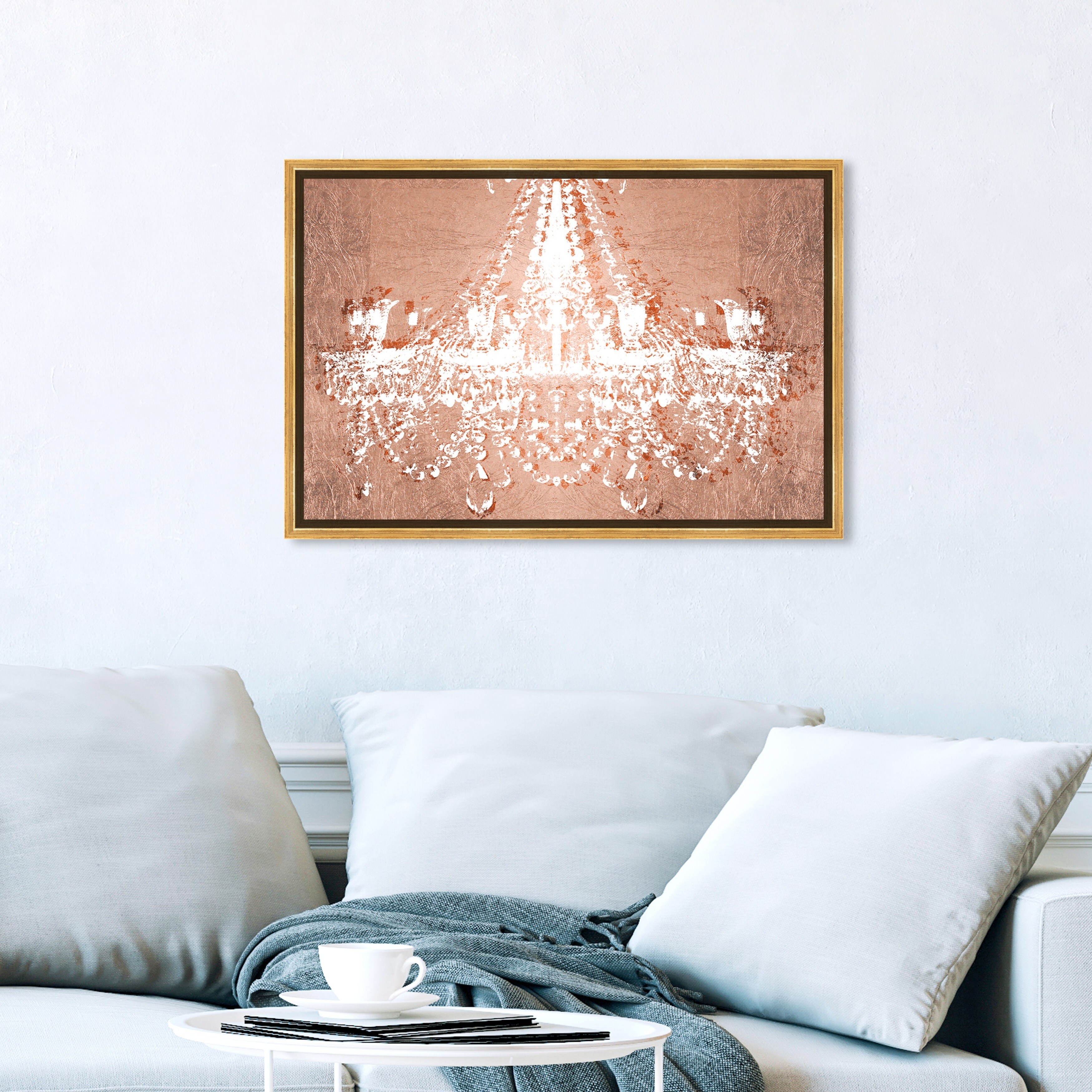 Oliver Gal 'Dramatic Entrance Rose' Fashion and Glam Wall Art Framed Canvas Print Chandeliers - Pink, White
