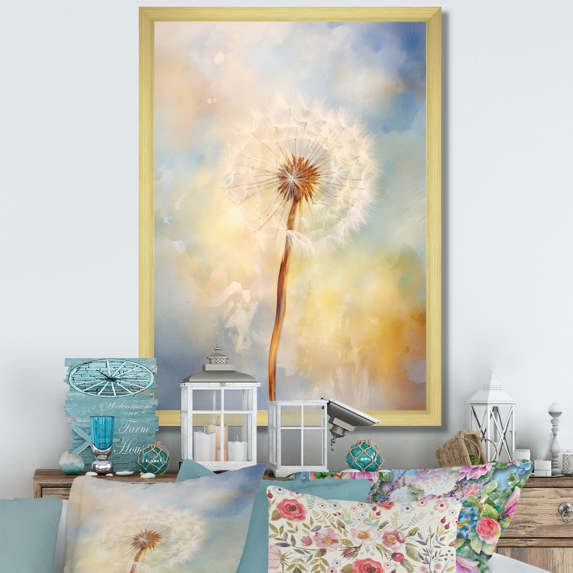 Designart "White Dandelion Romantic Impression III" Dandelion Framed Canvas Wall Art