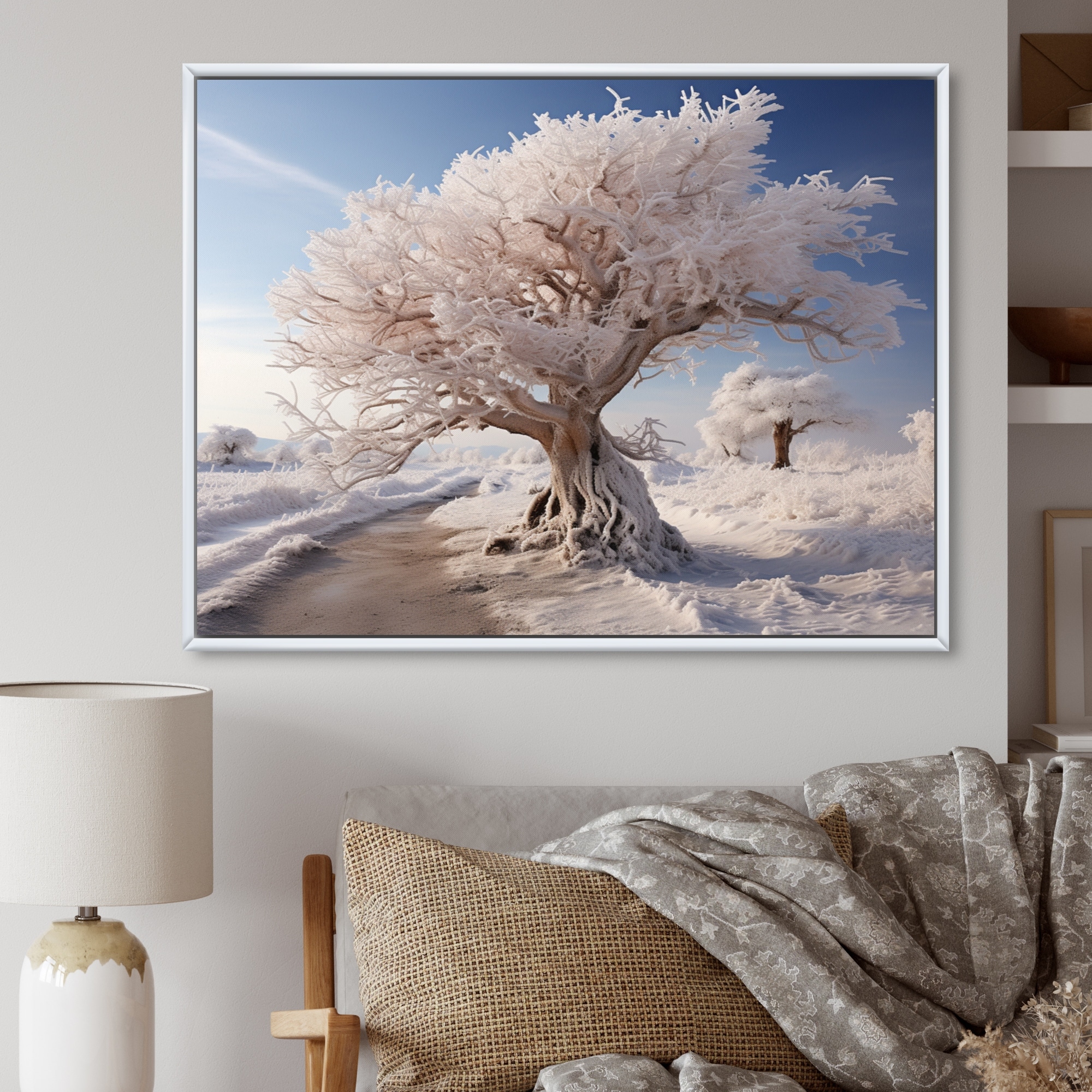 Designart "White Tree in Winter Scenery III" Winter Landscape Framed Canvas Wall Art