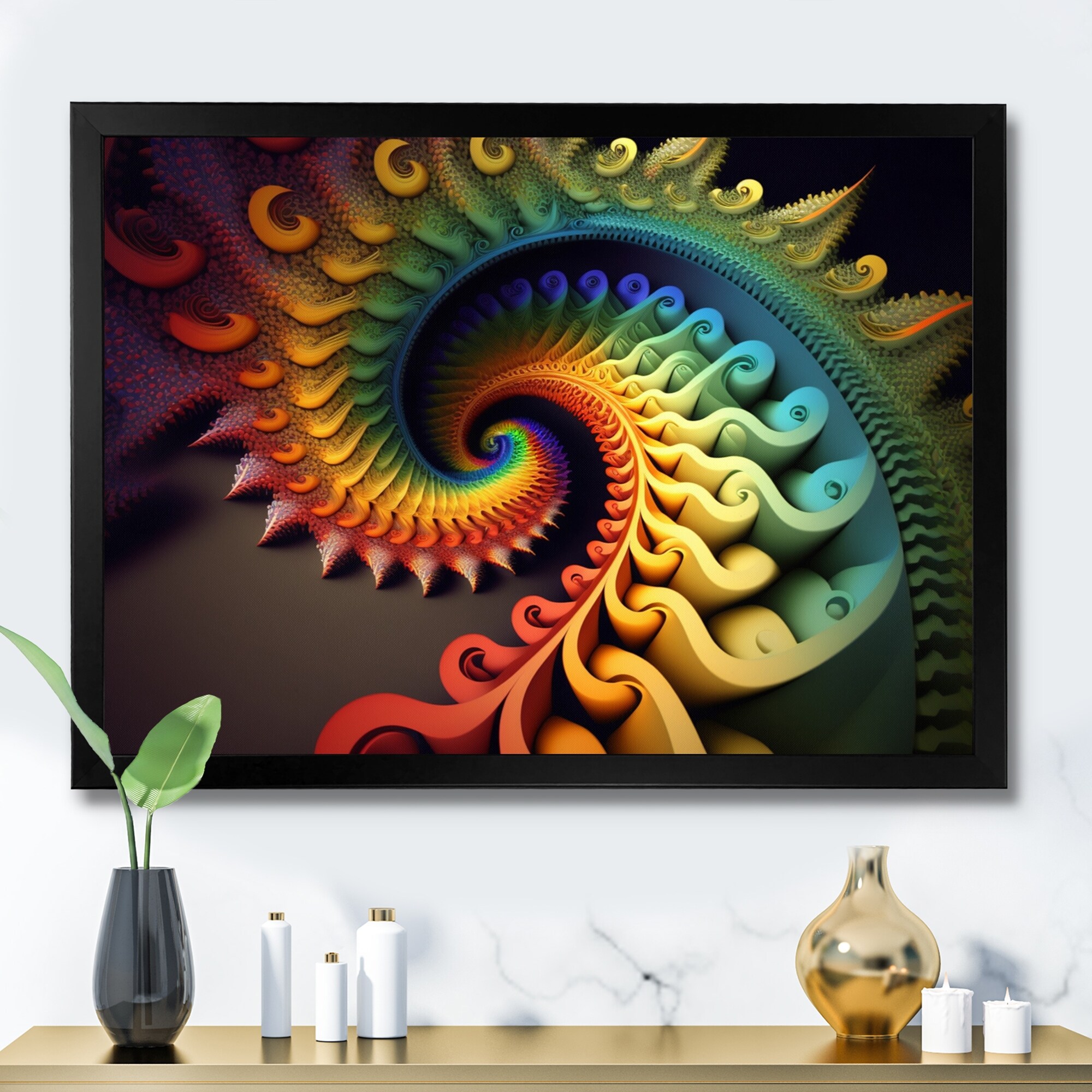 Designart "White Fractal Spiralling I" Modern Geometric Framed Art Print