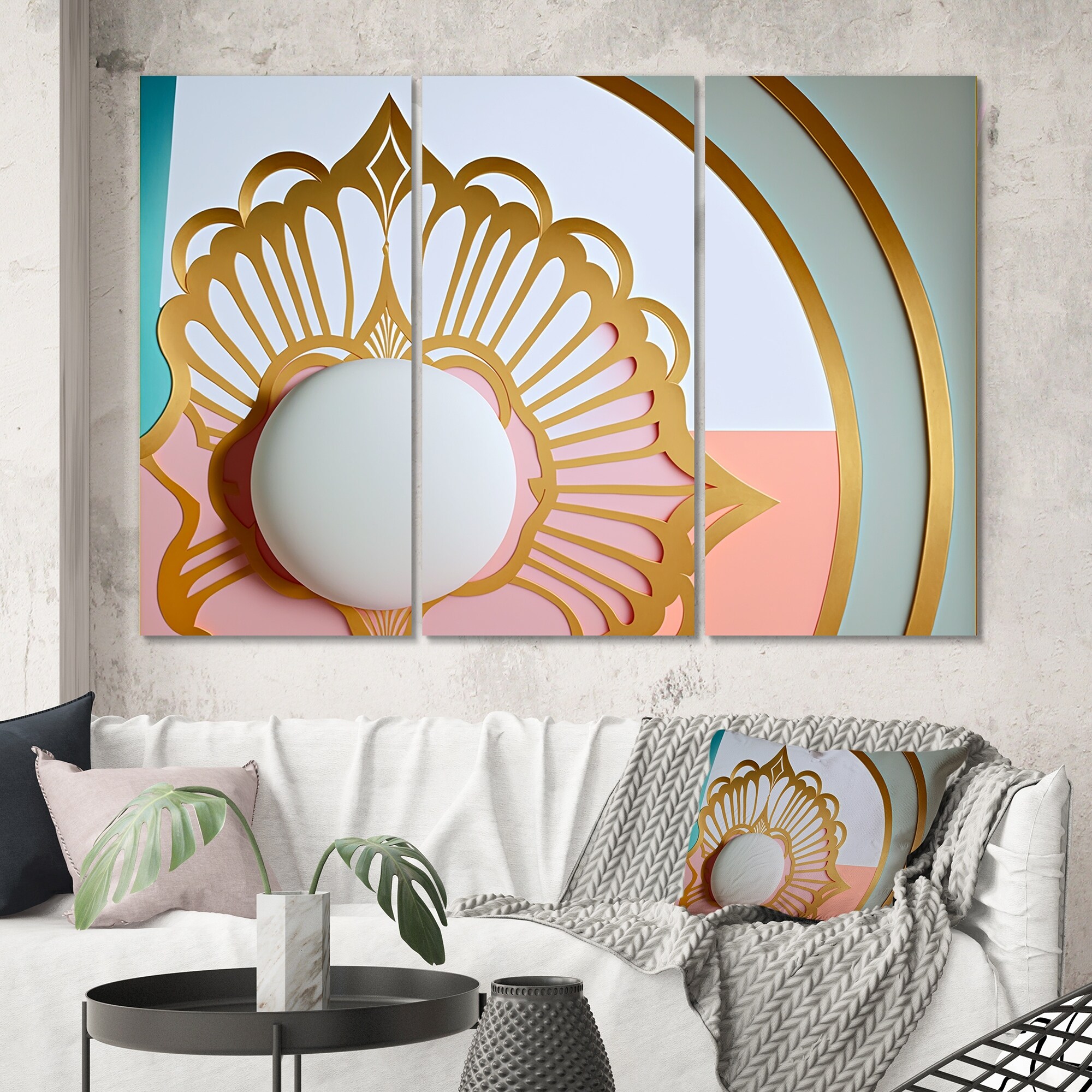 Designart "Gold And White Geometric Serenity Iii" Modern Geometric Framed Canvas Art Print