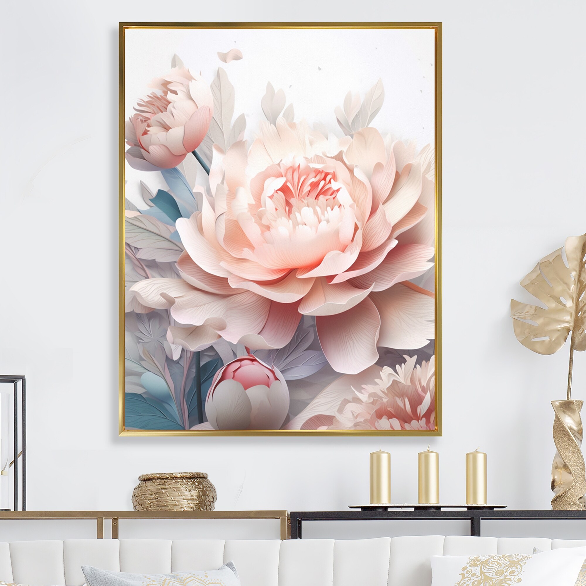 Designart "Pink White Peonies Celebration" Floral Peony Framed Wall Art Prints