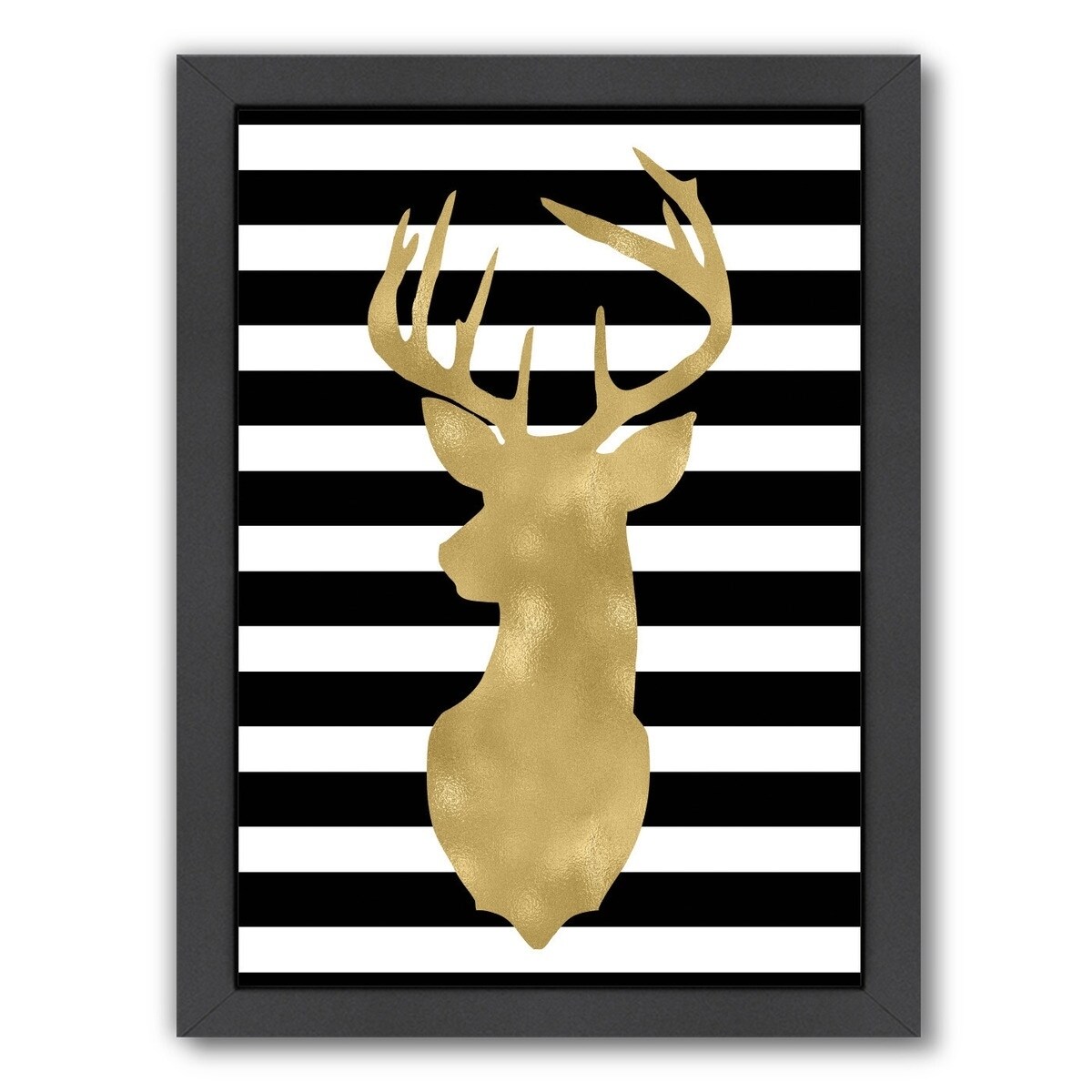 Deer Head Left Face Black White Stripe - Framed Print Wall Art