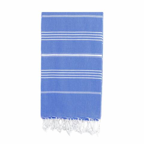 Authentic Pestemal Fouta Original Fouta Royal Blue and White Stripe Turkish Cotton Bath/ Beach Towel