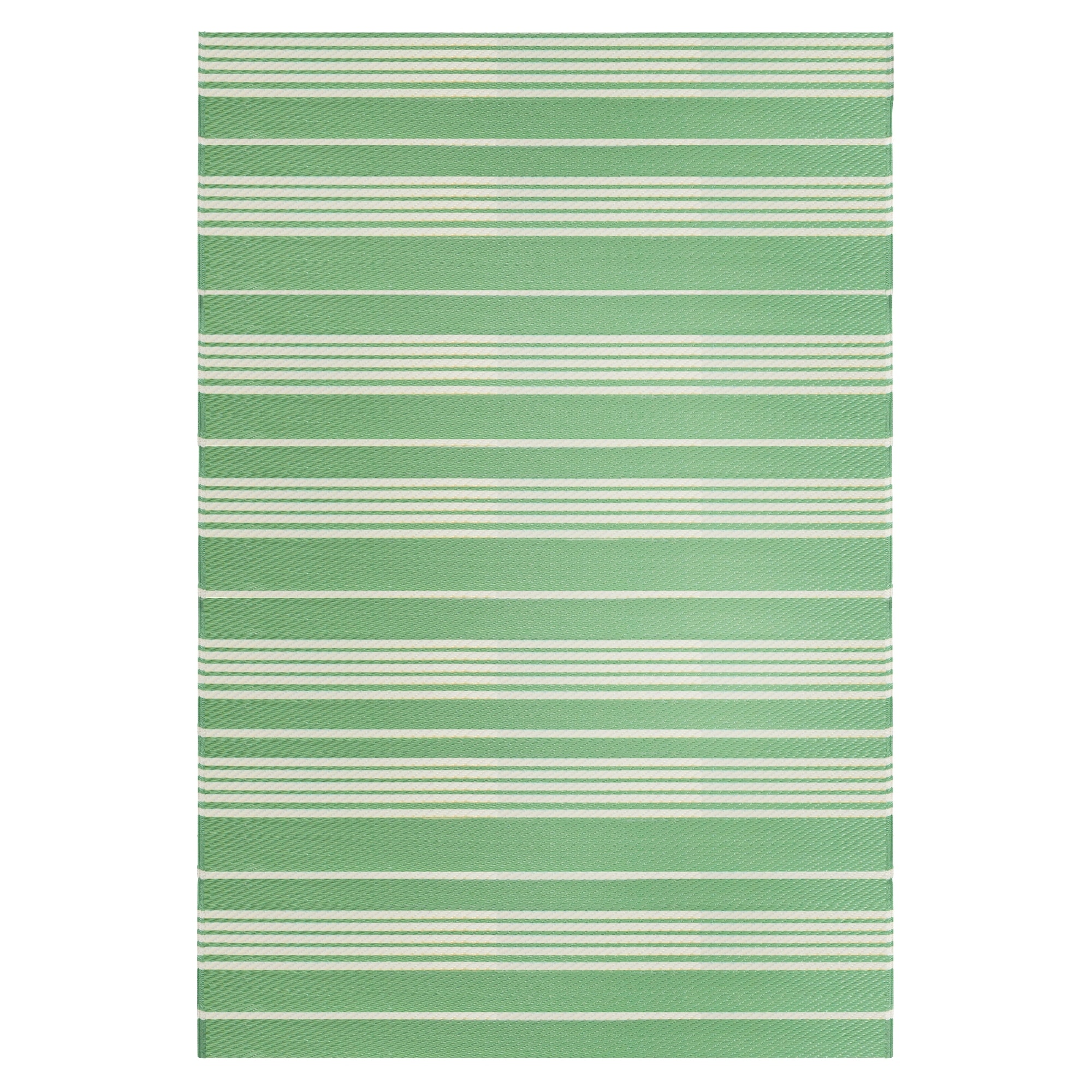 4' x 6' Green and White Striped Rectangular Outdoor Area Rug - 4' x 6'