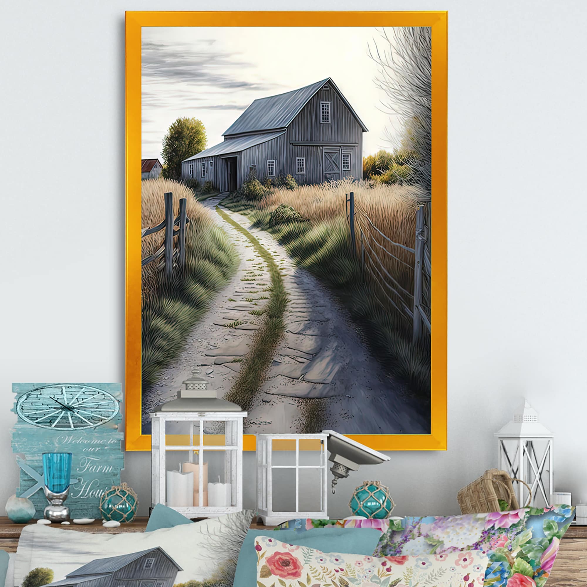 Designart "Picturesque Winding Path And Barn IV" Farmhouse / Country Framed Art Print