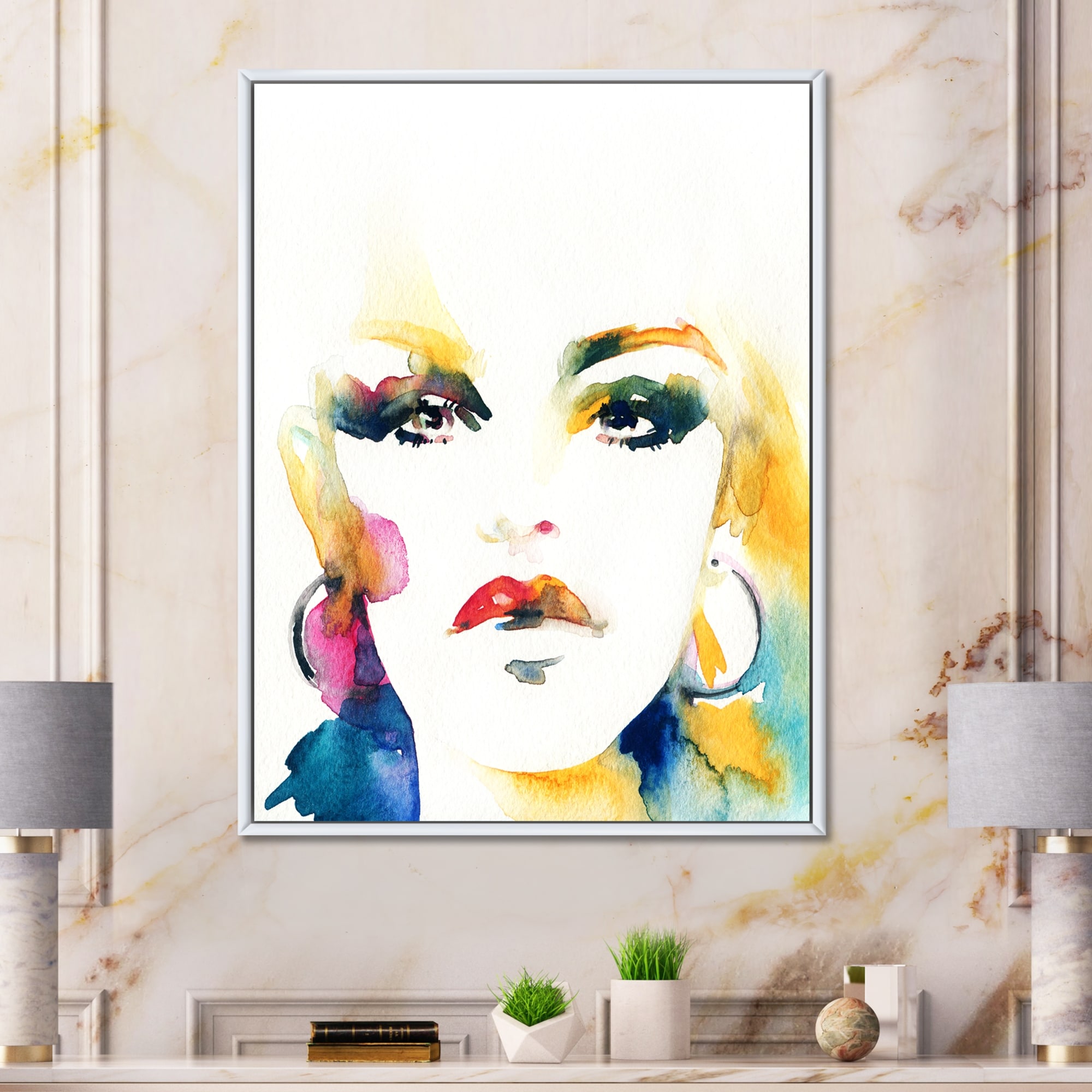 Designart "Vibrant Female Pop Art I" Fashion Woman Framed Canvas Art Print