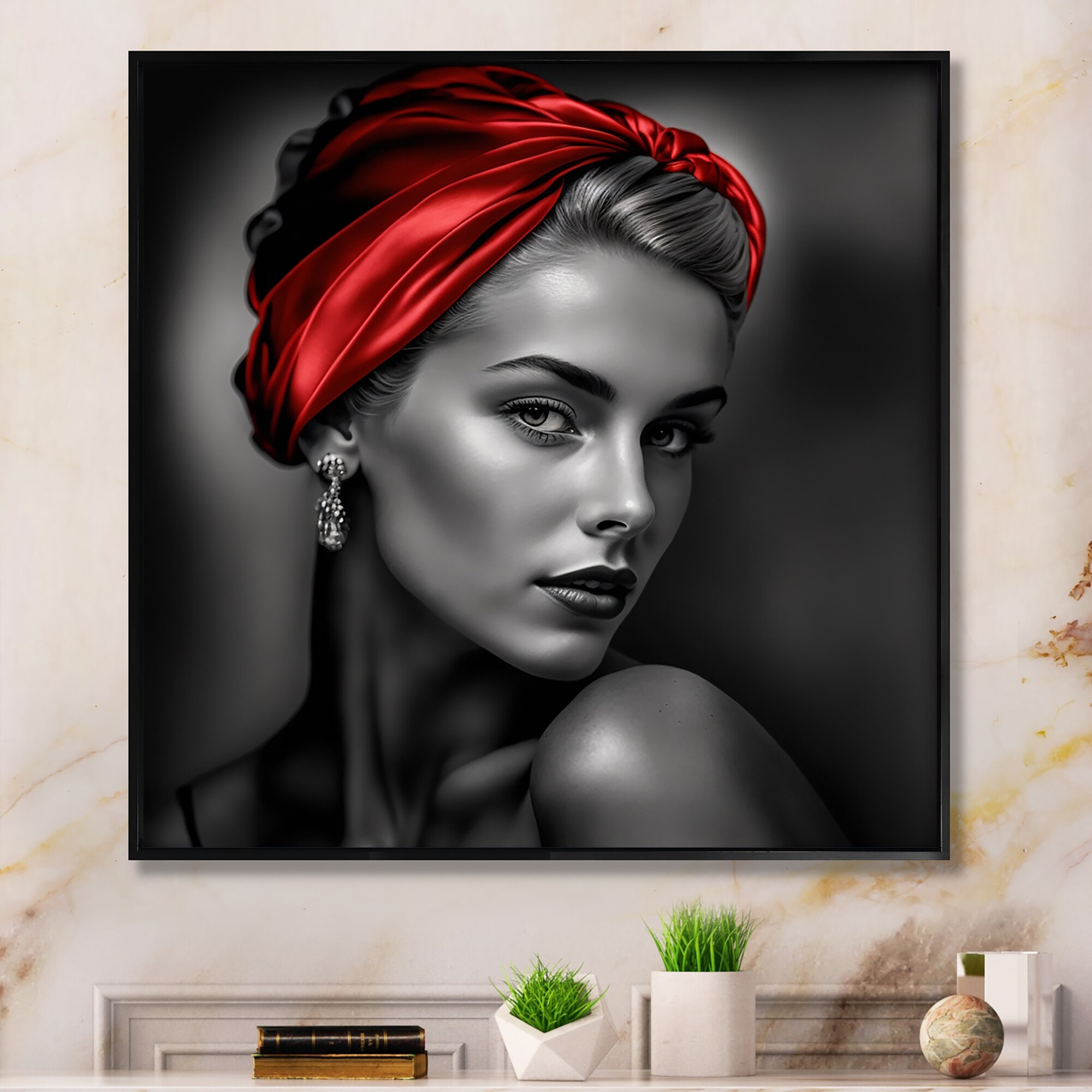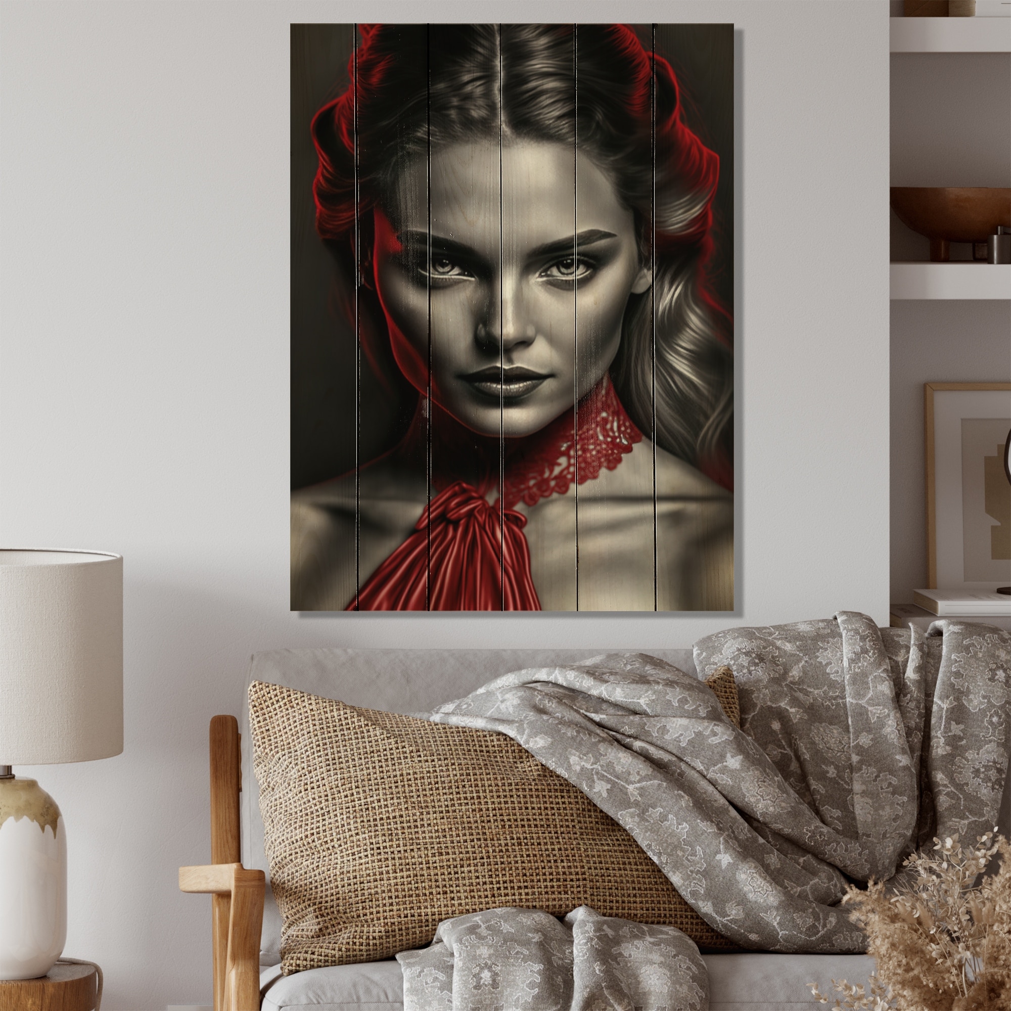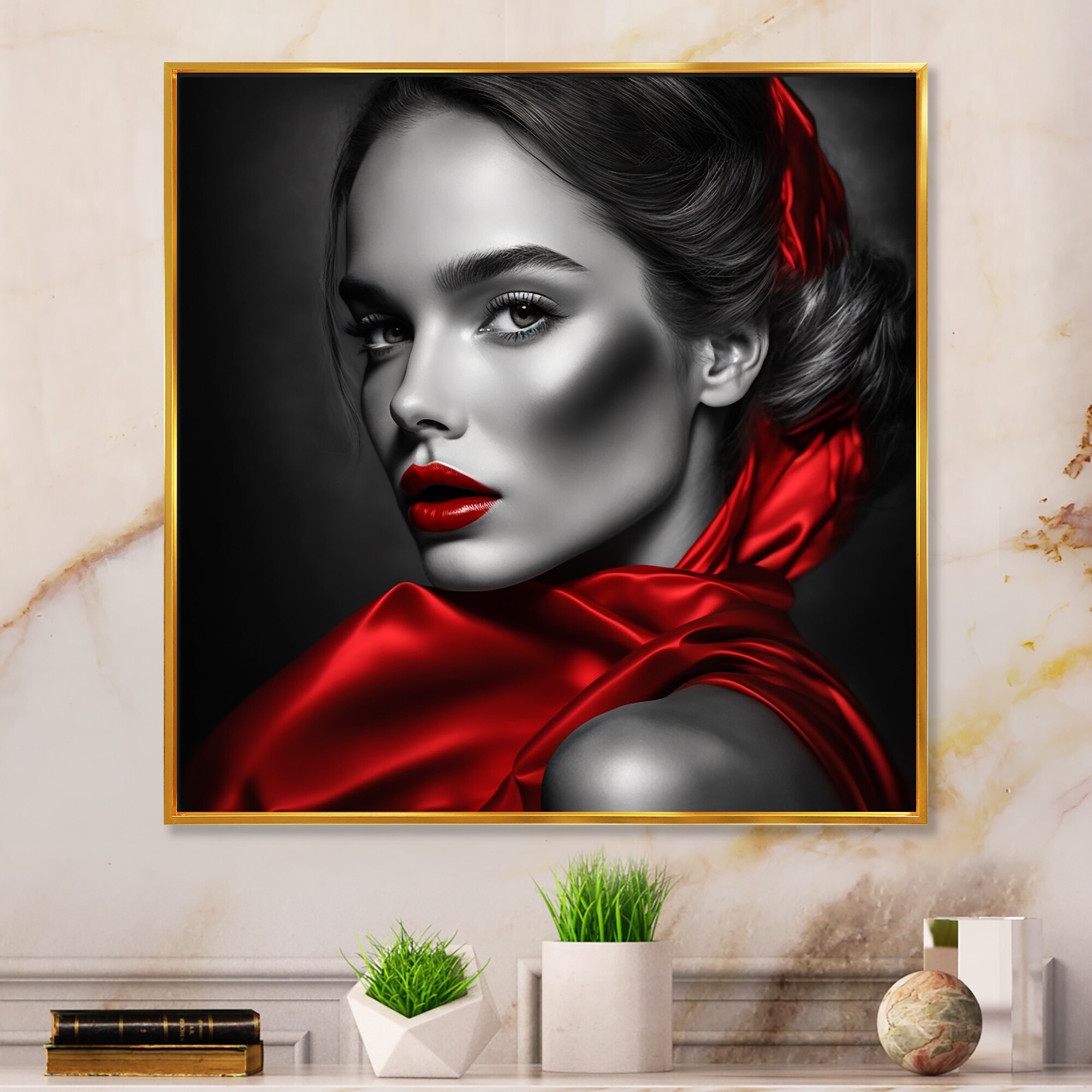 Designart "Vintage Sensuality in Red And Black II" Fashion Woman Framed Canvas Wall Art Print