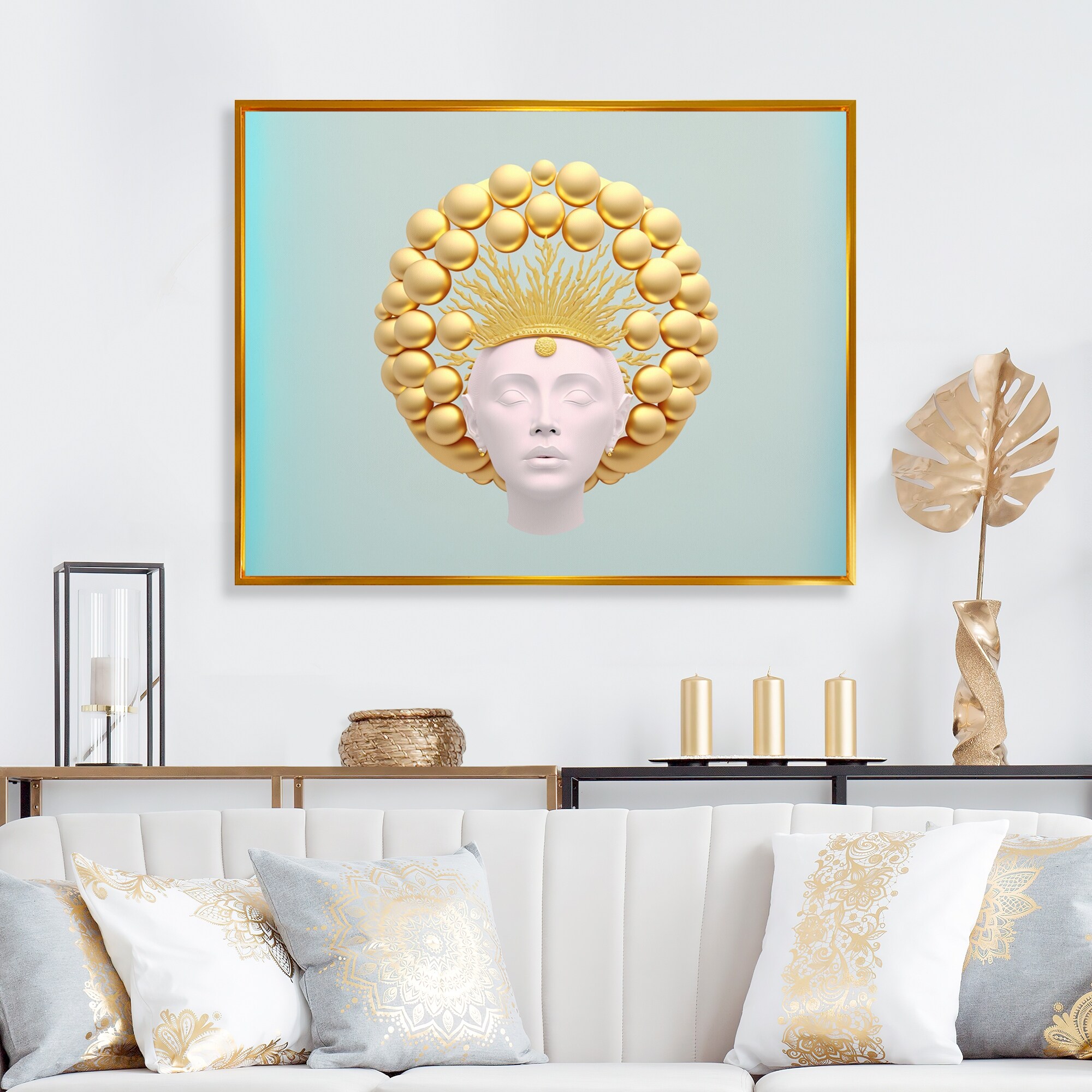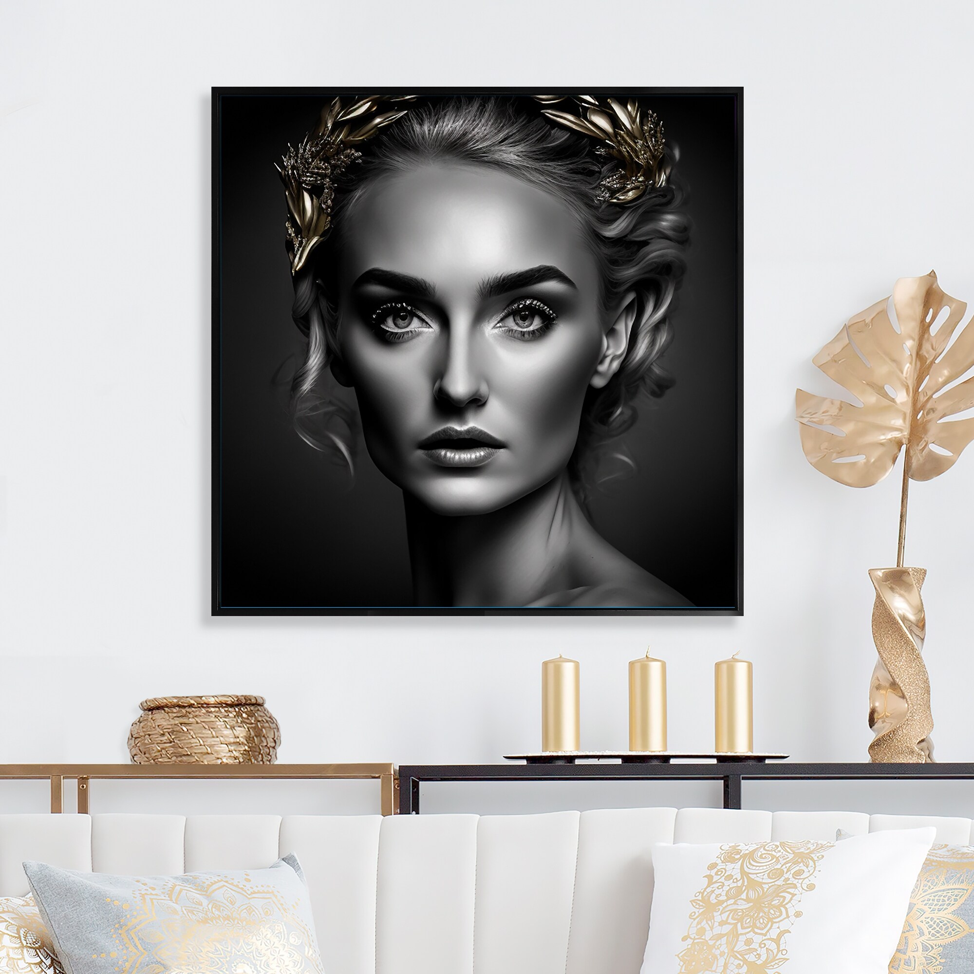 Designart "Golden Queen of Consciousness I" Modern Woman Framed Canvas Wall Art Print