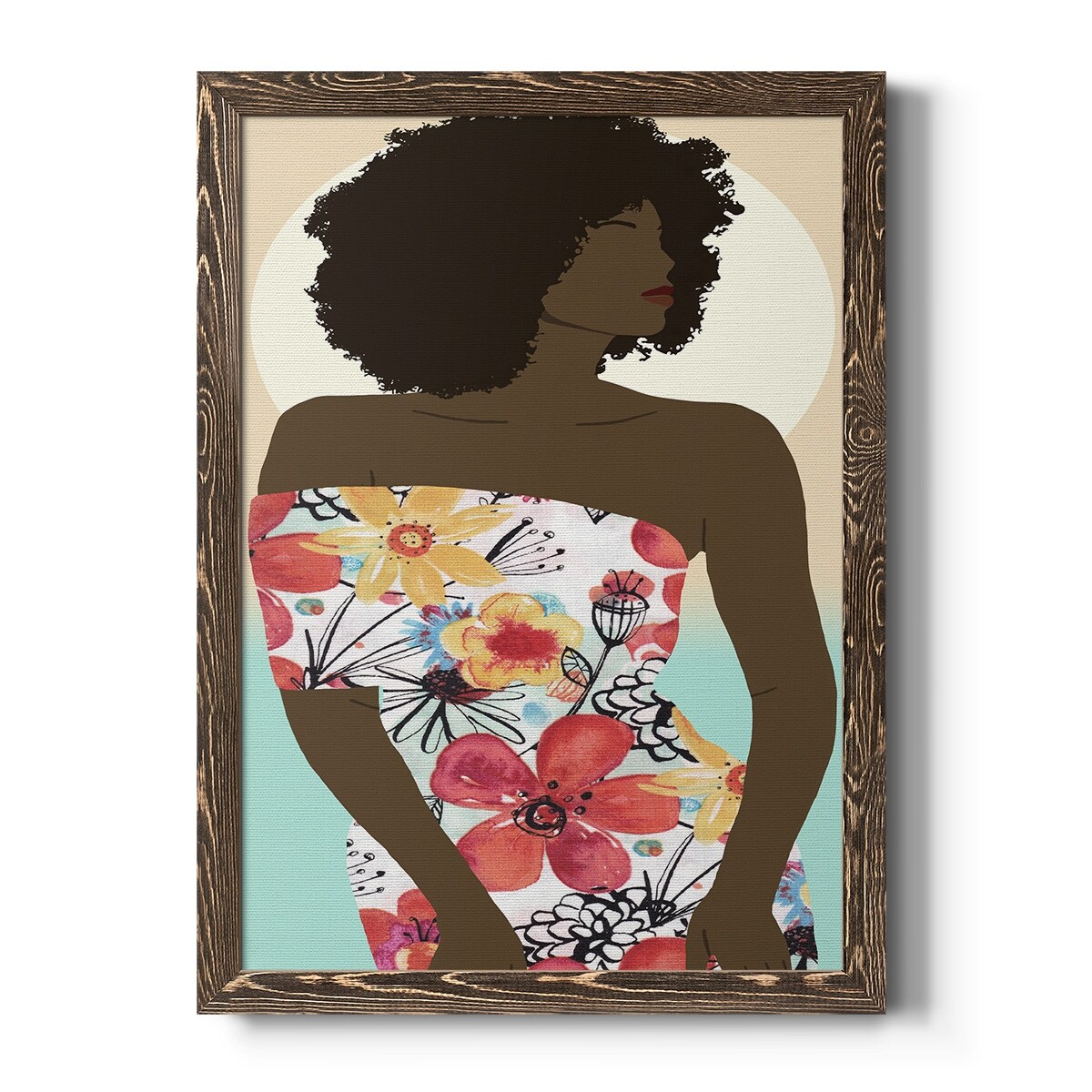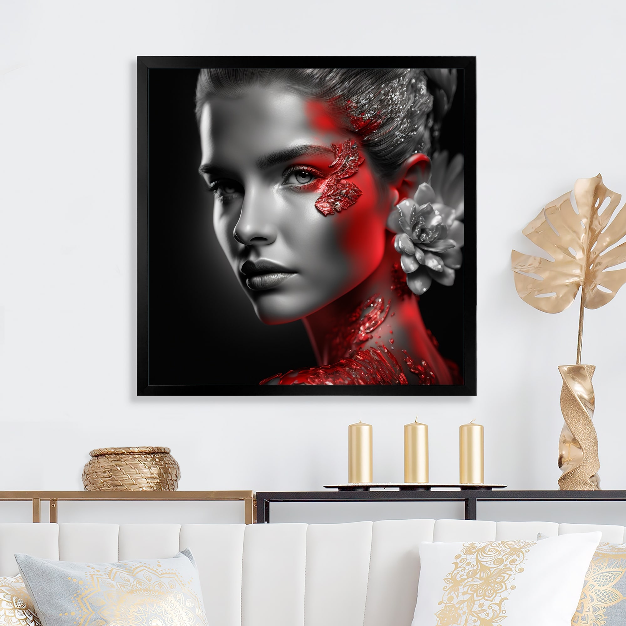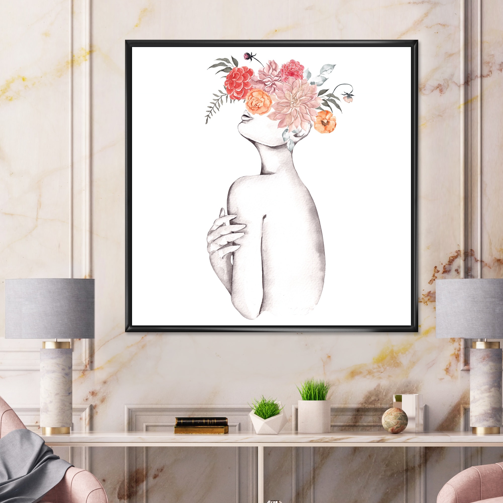 Designart "Floral Sensual Woman Portrait VI" Contemporary Glam Framed Canvas Art Print