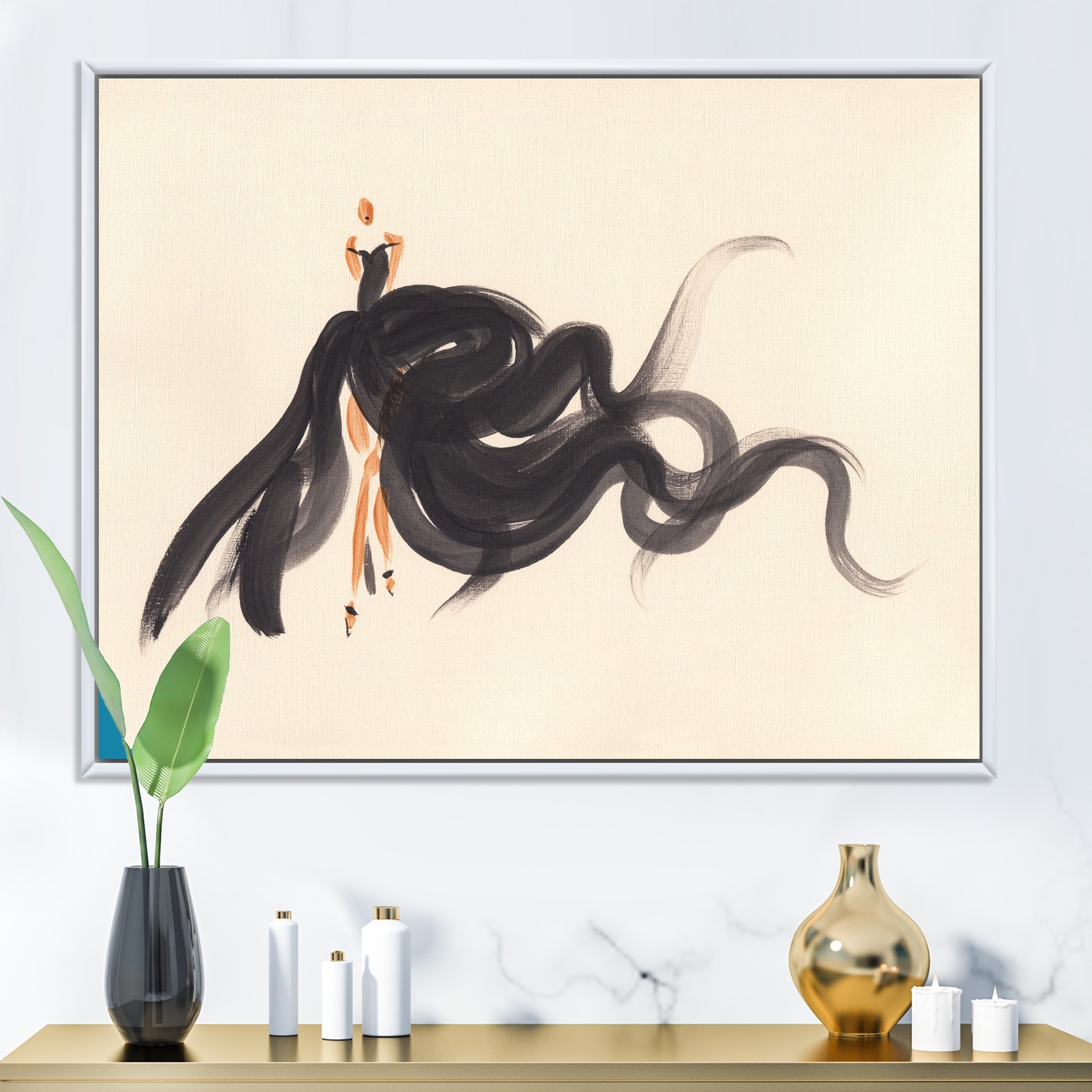Designart "Fashion Woman Line Art V" Glam Framed Canvas artwork
