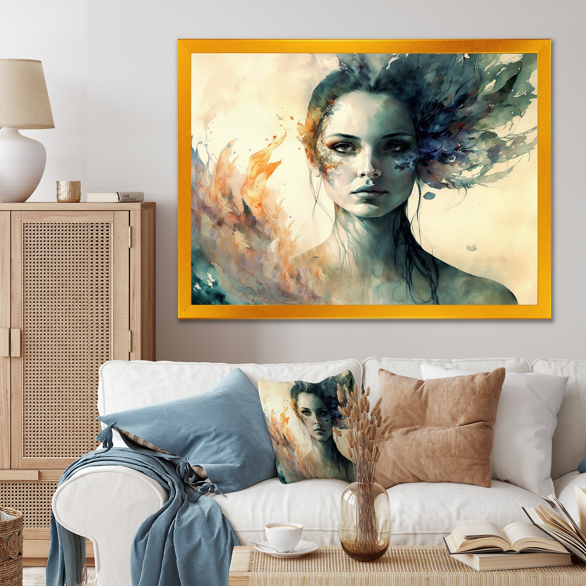 Designart "Bohemian Chic Woman Vintage Gold II" Boho Woman Framed Canvas Wall Art Print