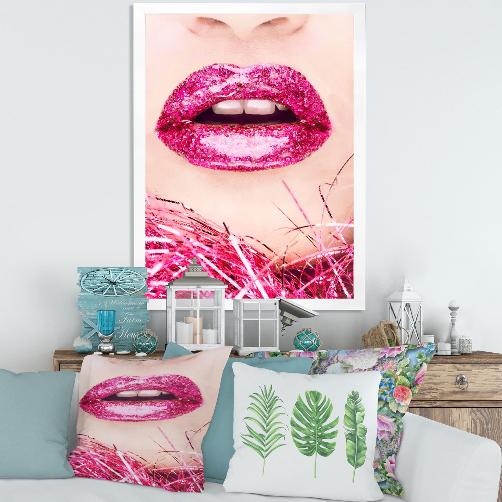 Designart "Close-Up of Woman Lips With Sequins" Modern Framed Art Print