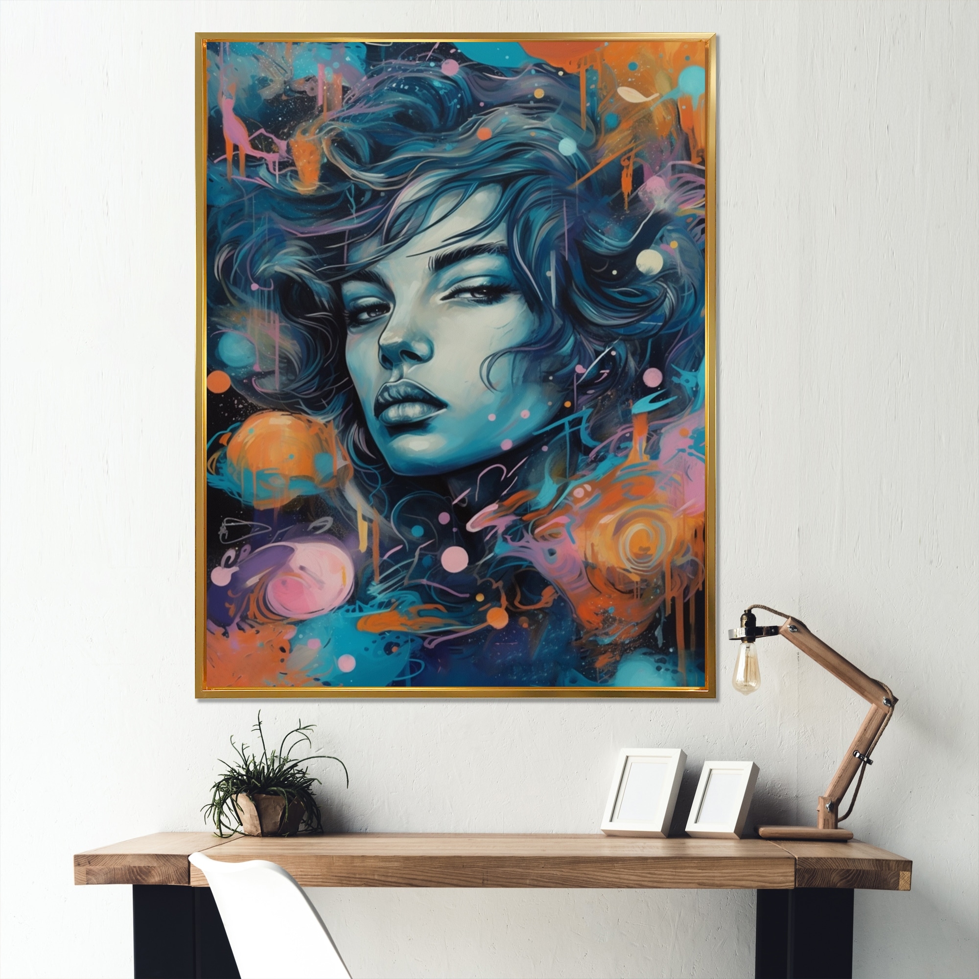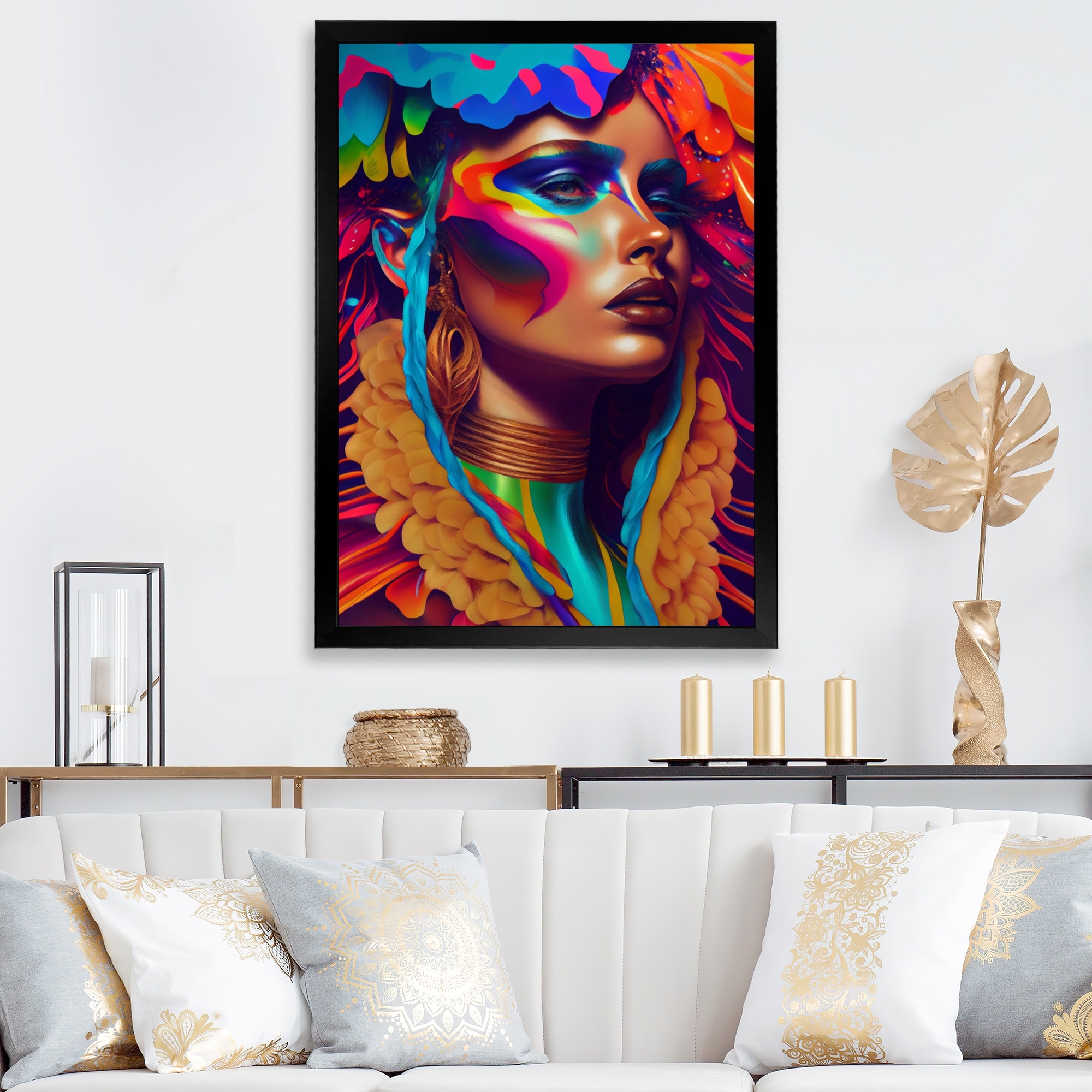 Designart "Colorful Fantasy Portrait of a Young Woman IV" Glam Framed Art Print