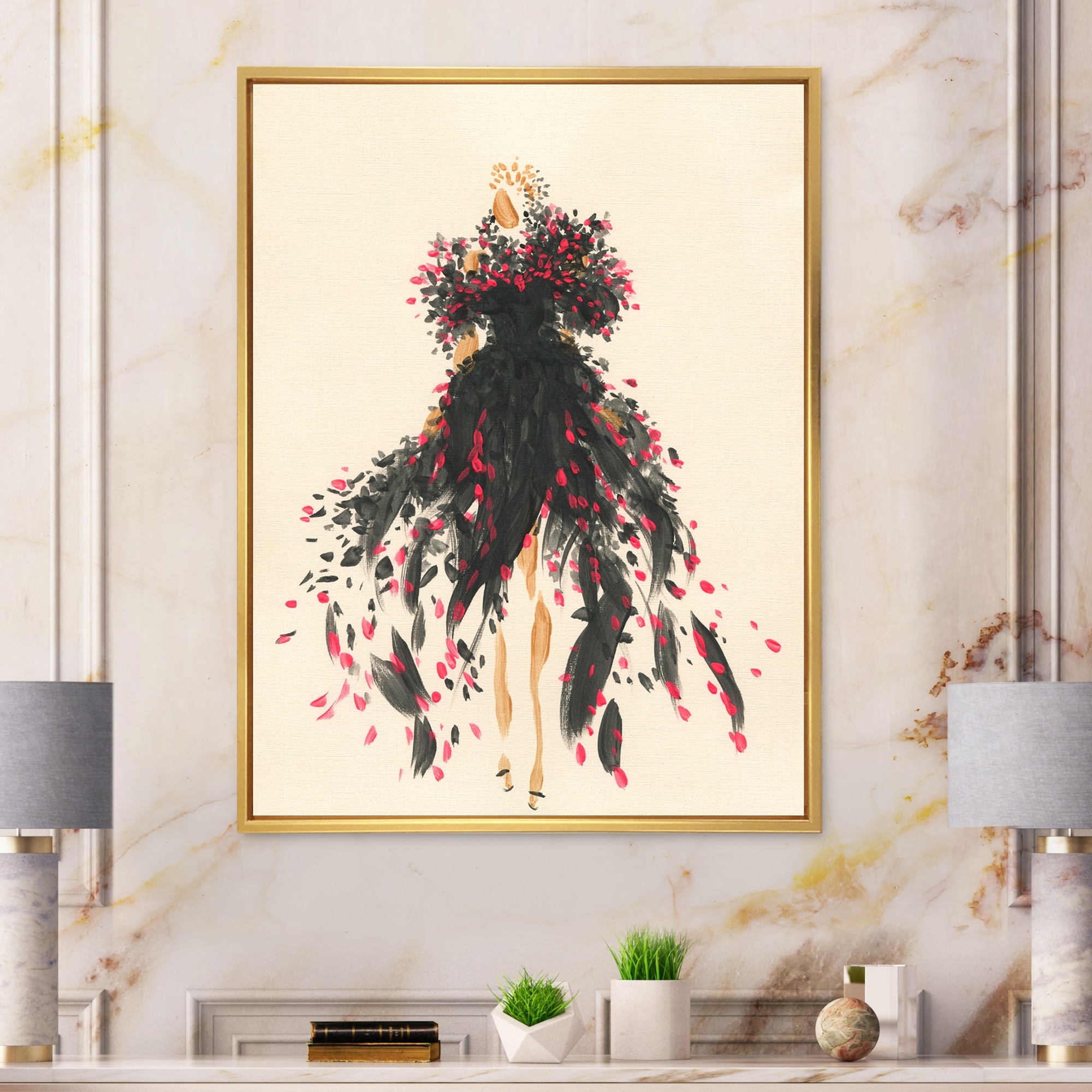 Designart "Retro Graciousness in Black And Red IX" Fashion Woman Framed Canvas Wall Art Print