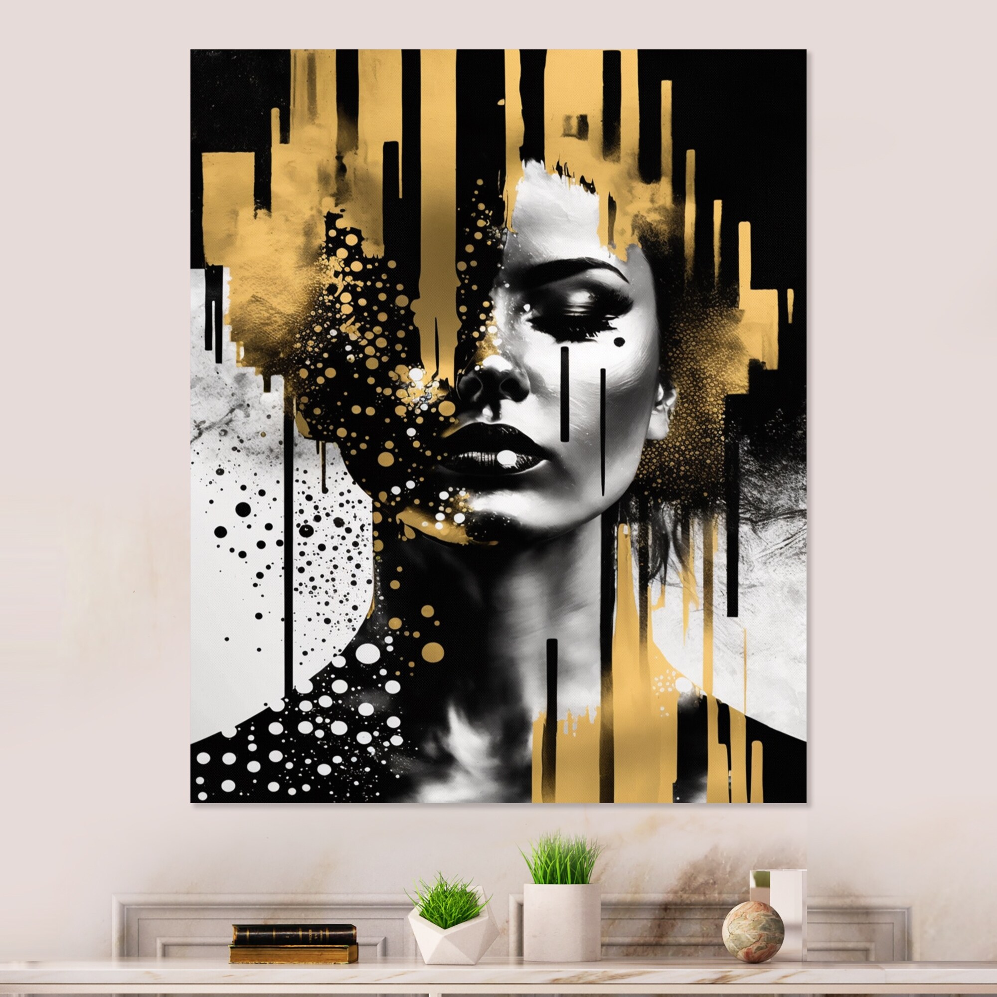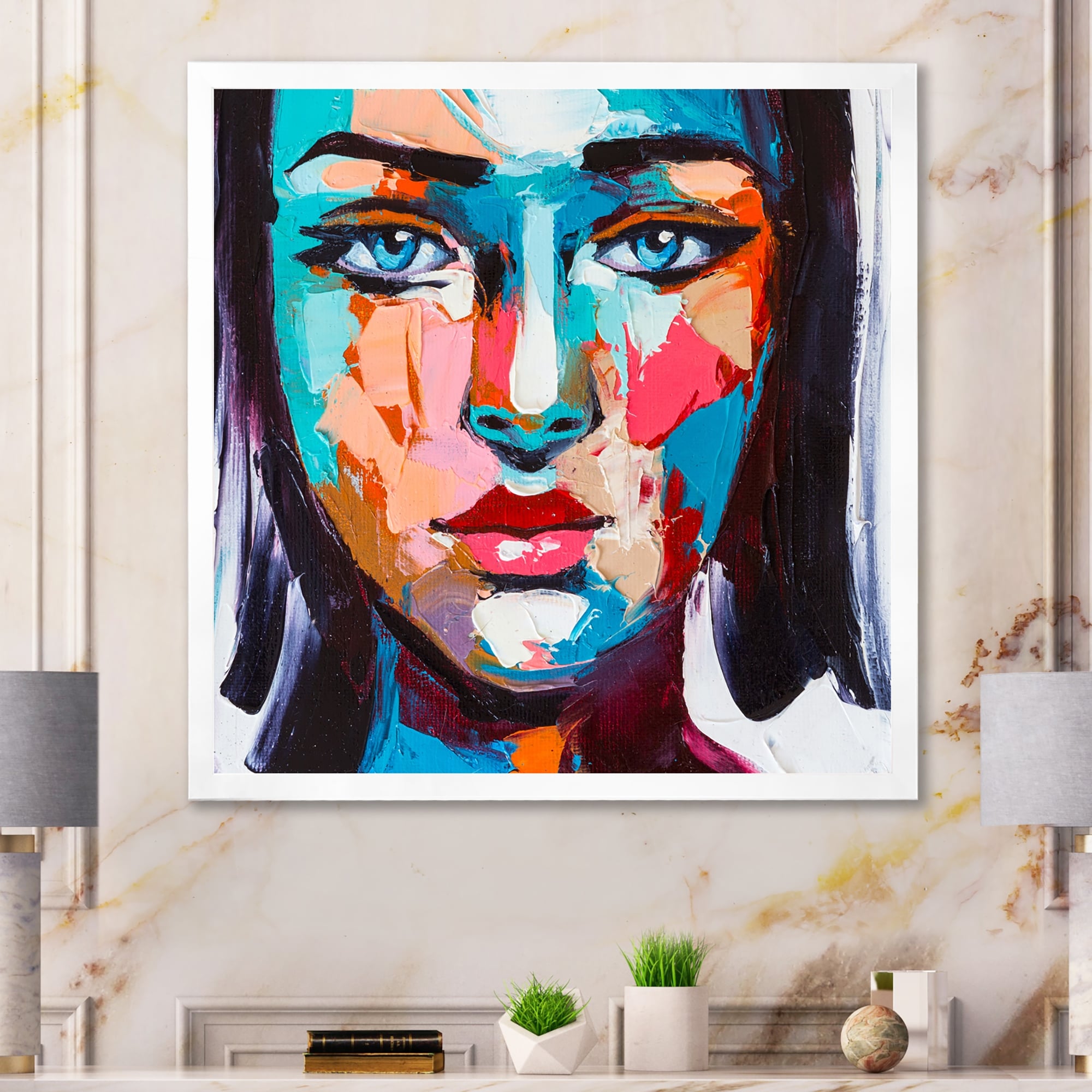 Designart "Woman Abstract Portrait" Abstract Realism Framed Canvas Art Print