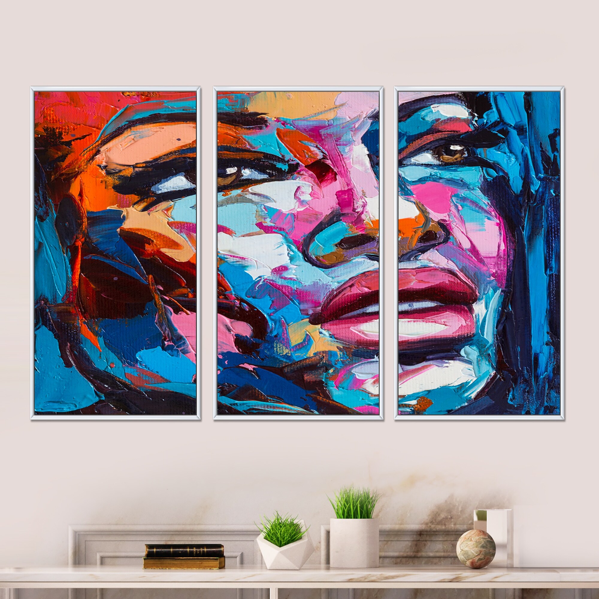 Designart "Colorful Fantasy Portrait of a Young Woman III" Modern Framed Wall Decor Set of 3 - 4 Colors of Frames