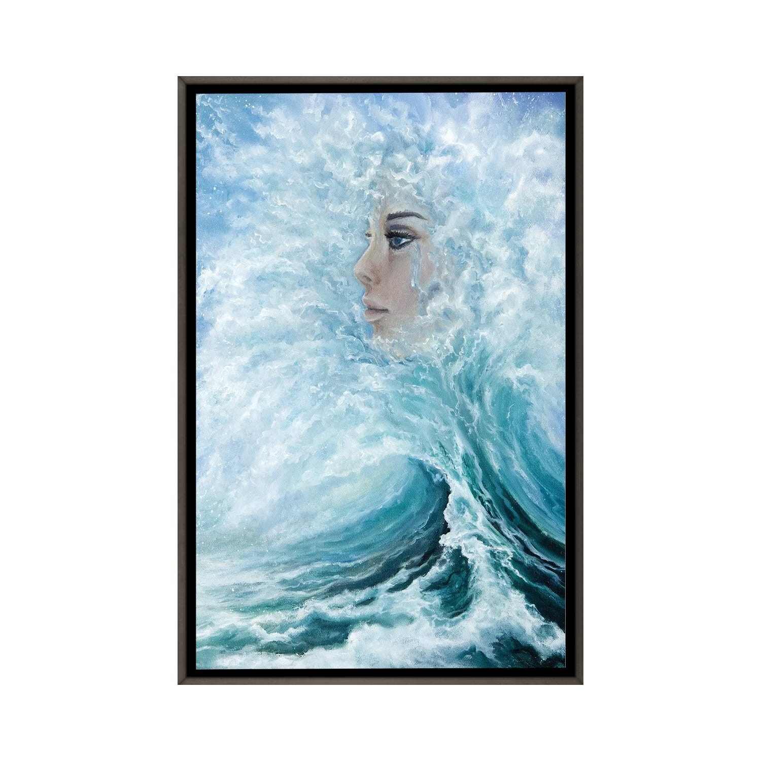 iCanvas "Woman Face From Waves in Ocean" by borojoint Framed