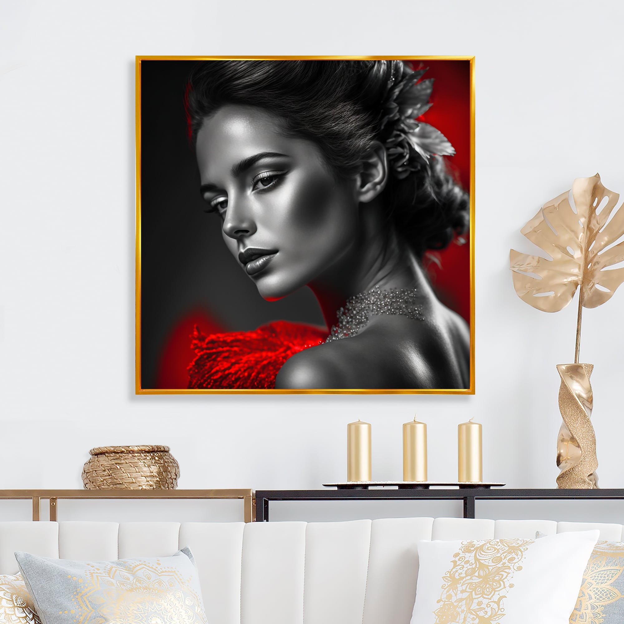 Designart "Vintage Stylish Red Ornated Lady" Fashion Woman Framed Art Print