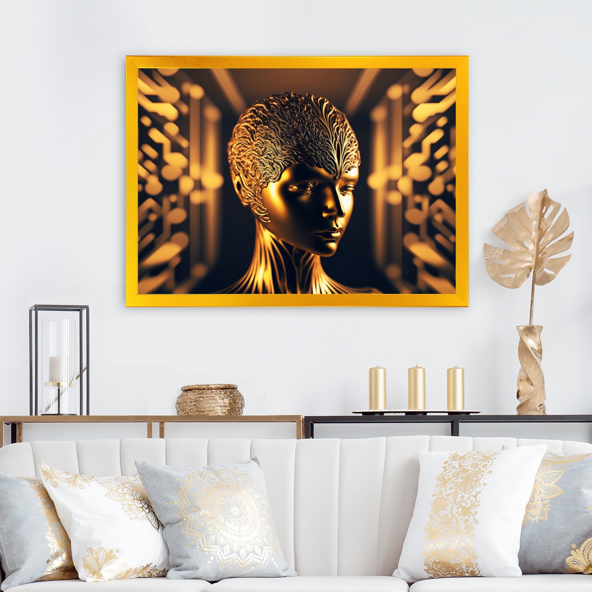 Designart "Futuristic Golden Goddess VI" Modern Woman Framed Art Print