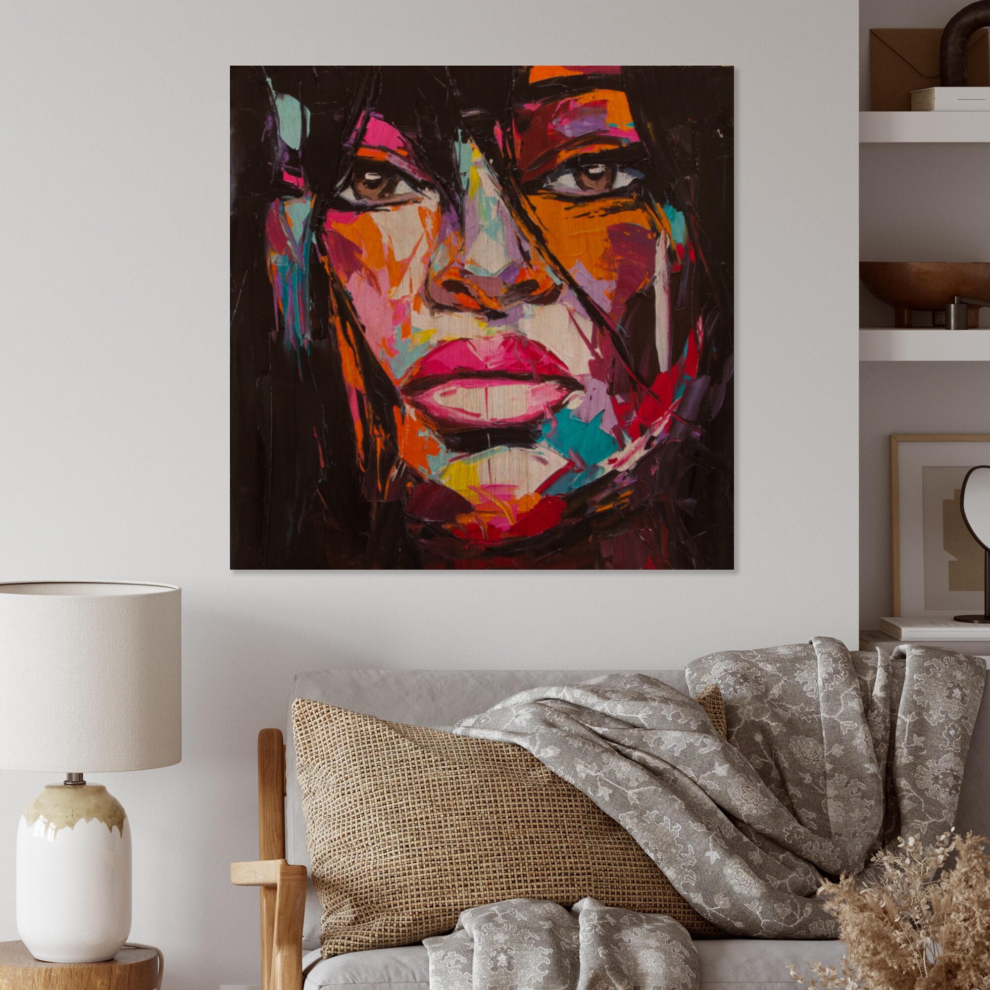 Designart 'Colorful Fantasy Portrait of a Young Woman II' Glam Wood Wall Art - Natural Pine Wood