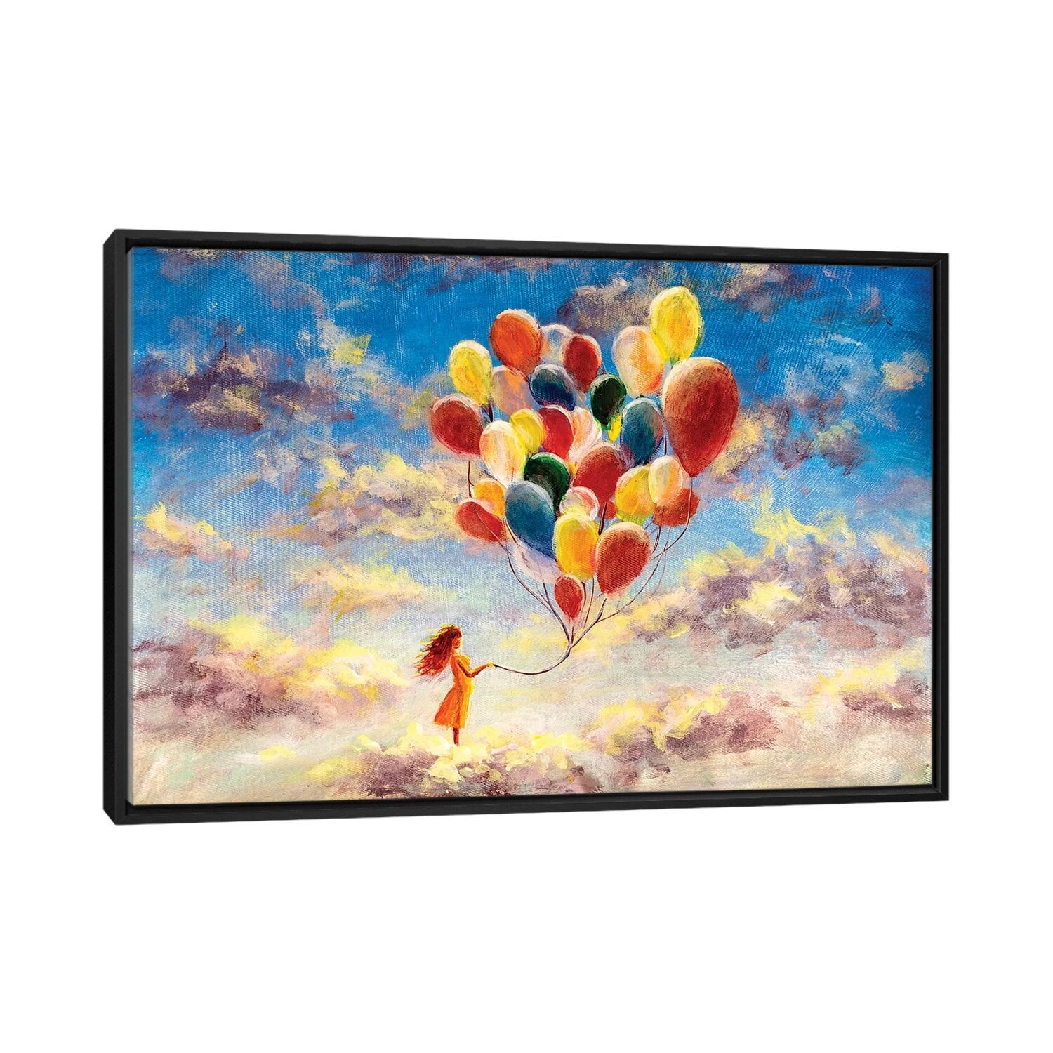 iCanvas "Woman With Colorful Balloons Among the Clouds" by Valery Rybakow Framed Canvas Print